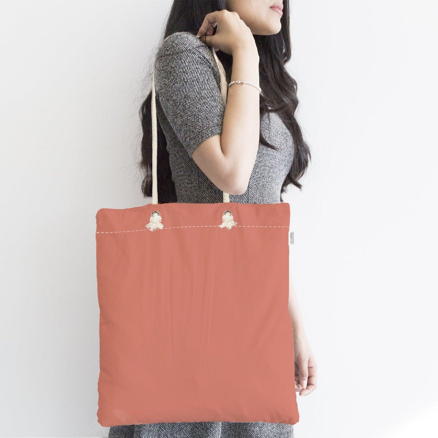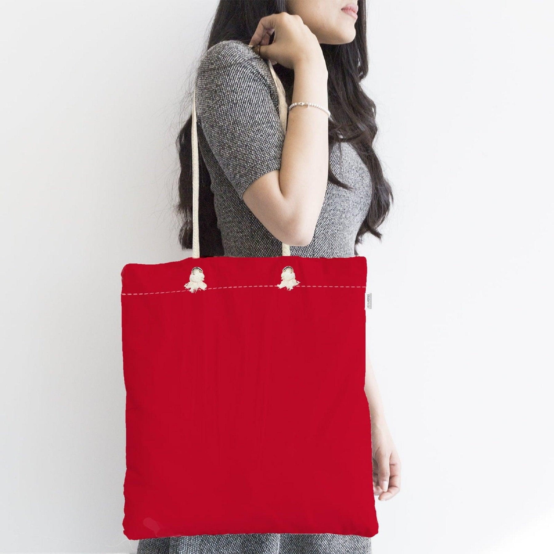 This elegant digital printed red, blue, brickcolor and yellow fabric bag;