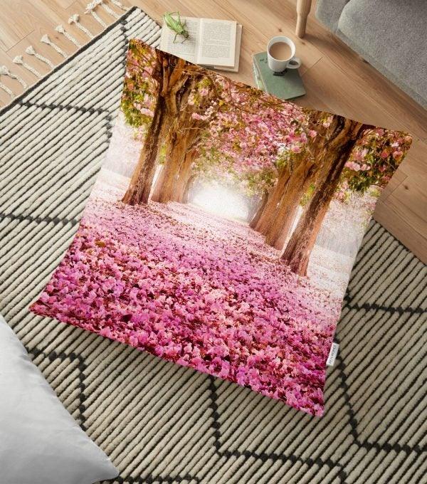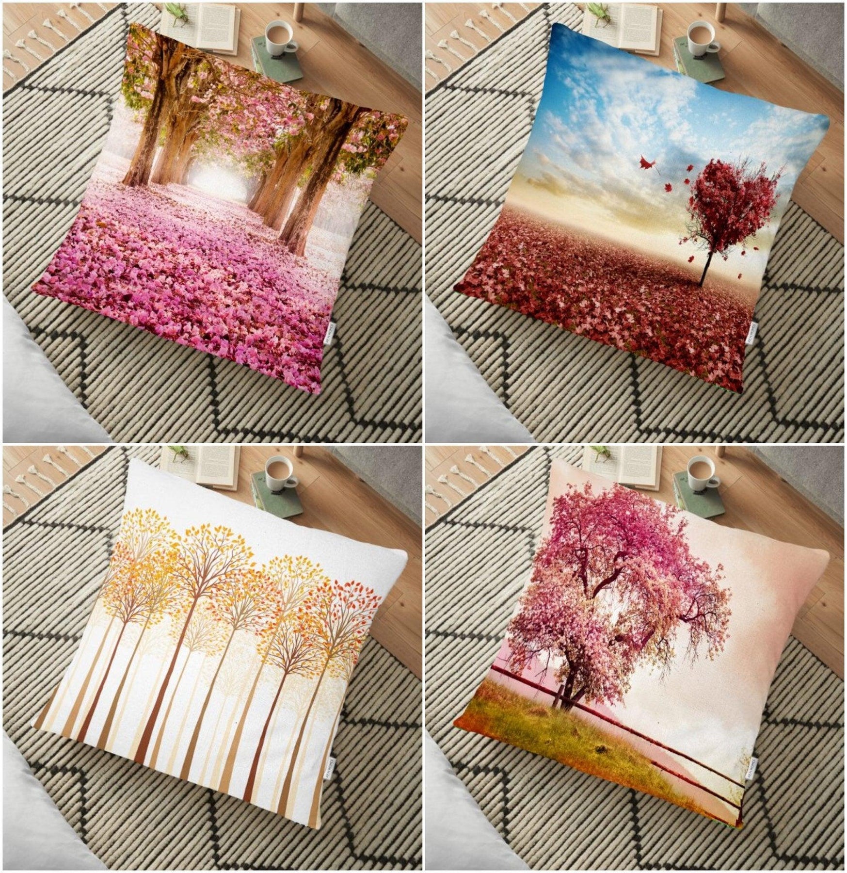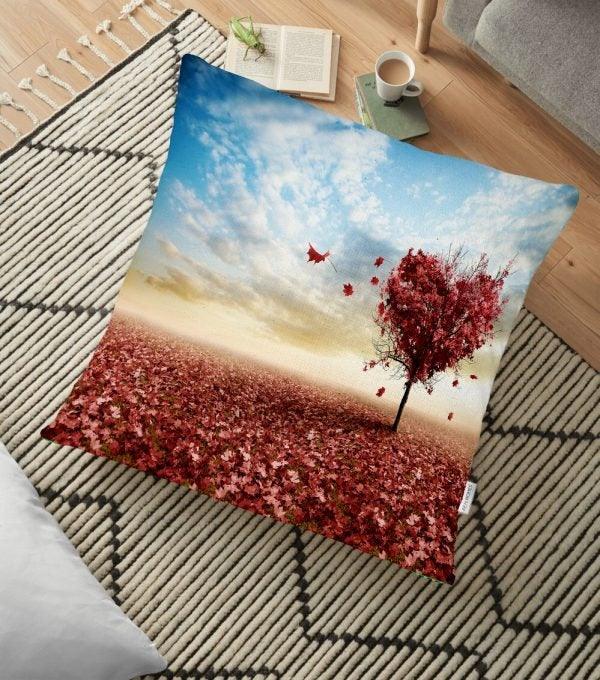 These elegant stylish and high quality square colorful fall landscape floor pillow covers;
