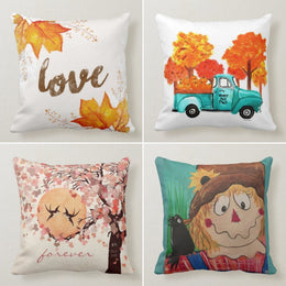 Fall Trend Pillow Cover|Autumn Cushion Case|Orange Leaves Throw Pillow|Autumn Tree Home Decor|Housewarming Sunflower Scarecrow Pillow Top