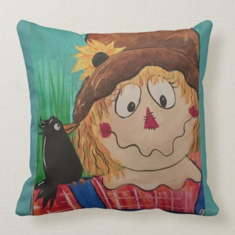 These elegant square decorative rustic farmhouse style throw cushion covers with scarecrow, sunflower, orange trees and leaves;
