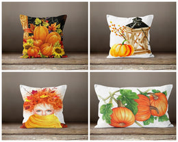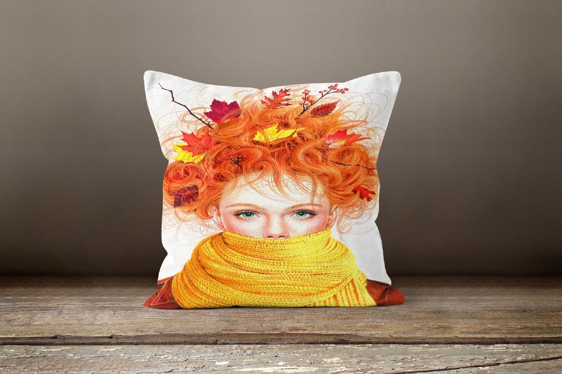 Autumn Girl Cushion Case with|Orange Pumpkin