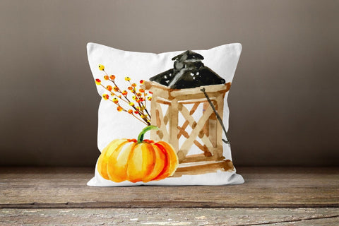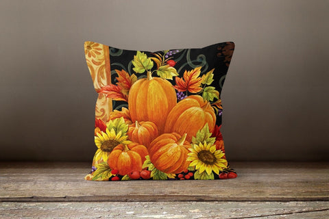 These elegant square decorative Halloween rustic farmhouse style throw pillow covers with pumpkins, flowers and leaves;