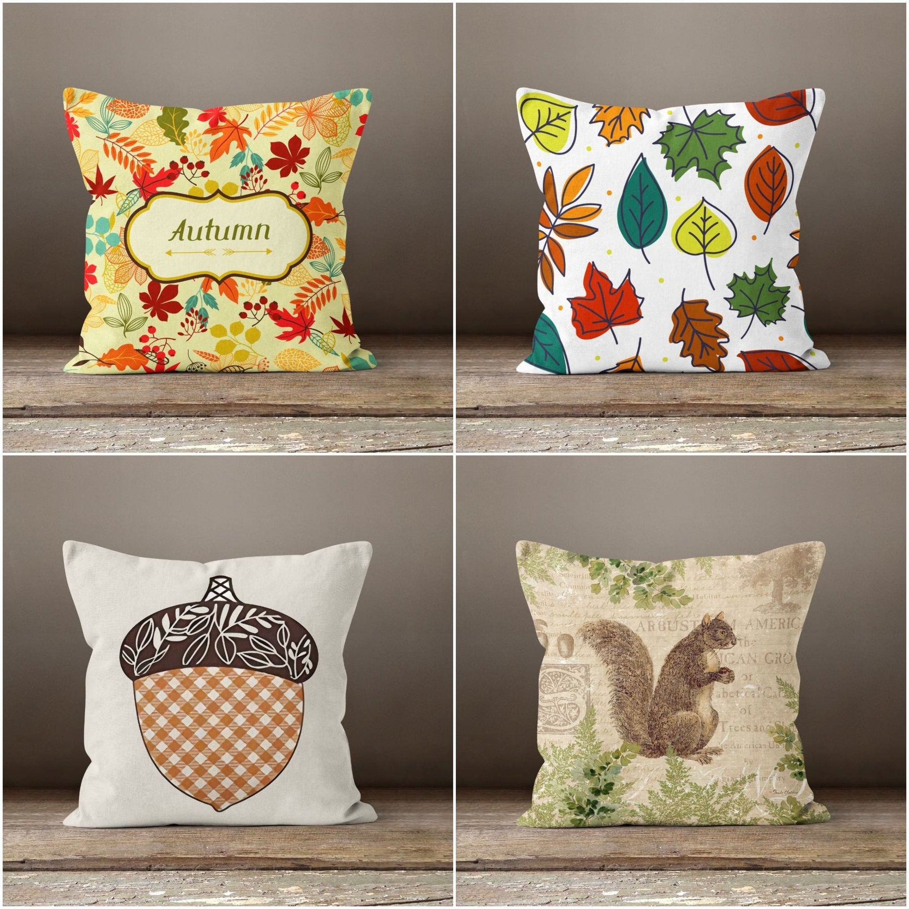 These elegant square decorative rustic farmhouse throw cushion covers with squirrel, acorn, leaves and Autumn print;