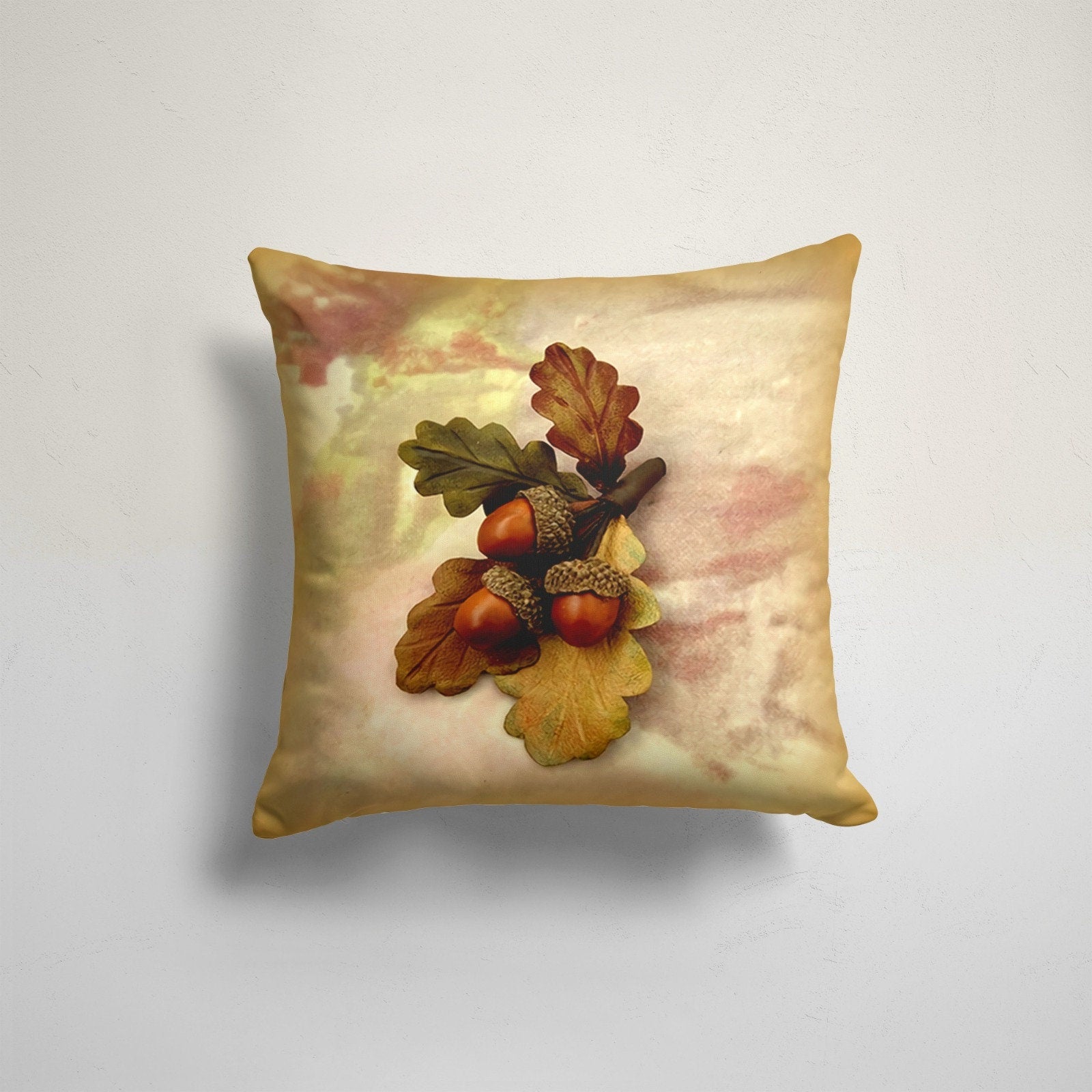 These elegant square decorative rustic farmhouse throw cushion covers with squirrel, acorn, Give Thanks print and leaves;