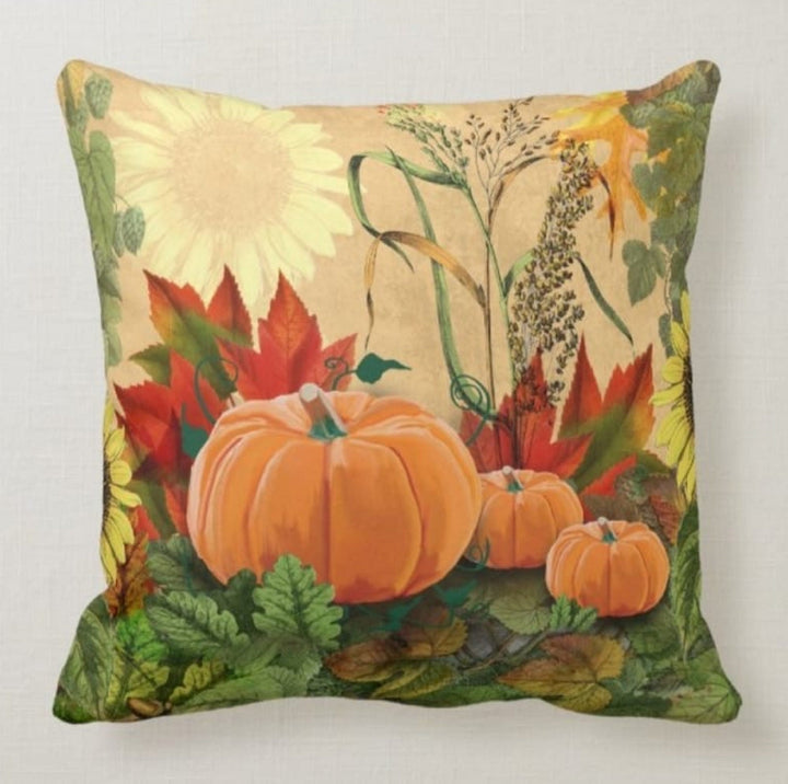 These elegant square decorative Halloween rustic farmhouse style throw cushion covers with pumpkins, flowers and leaves;