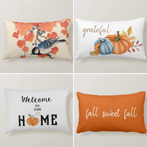 These elegant rectangle decorative Halloween rustic farmhouse throw/lumbar cushion covers with pumpkins and bird;