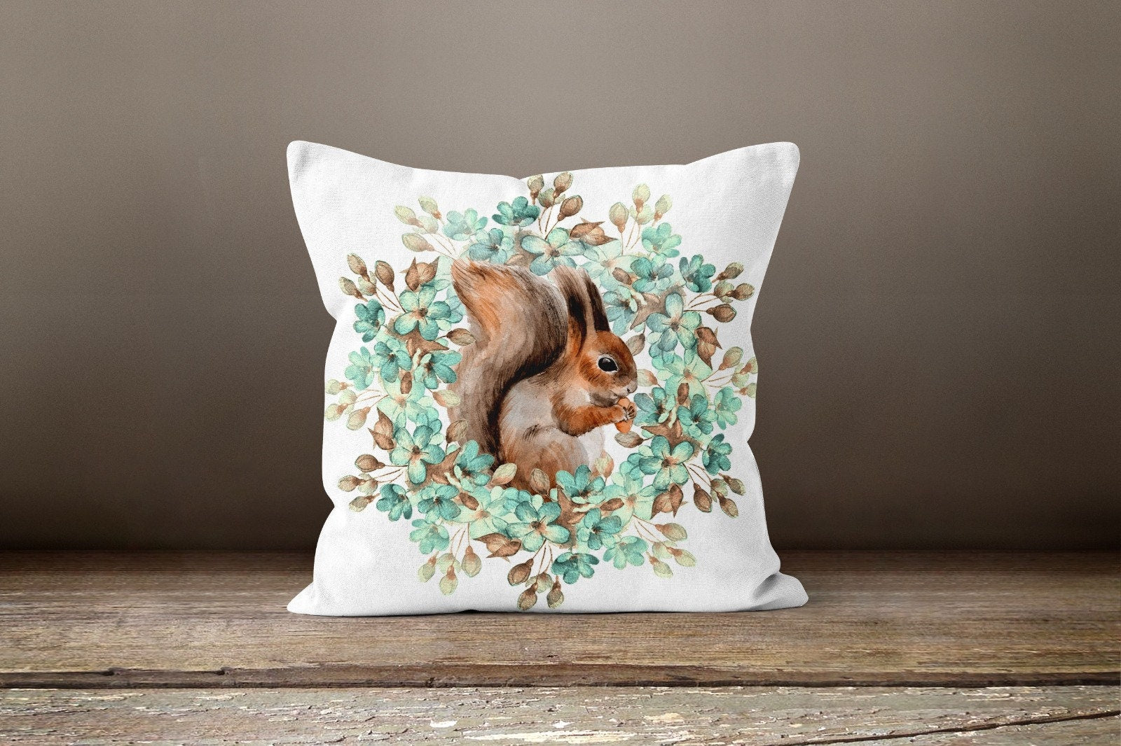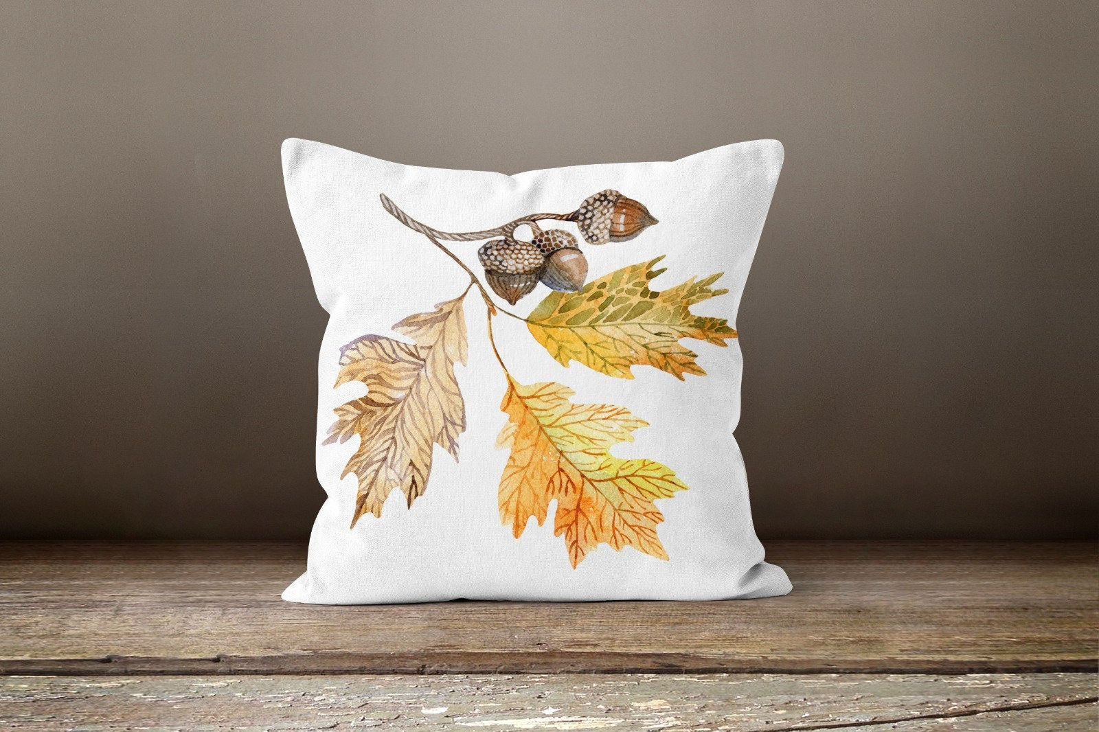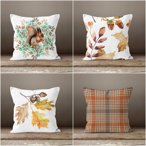 Fall Trend Pillow Cover|Autumn Cushion Case|Acorn and Squirrel Throw Pillow|Dry Leaf Home Decor|Housewarming Pillow Case|Farmhouse Pillow