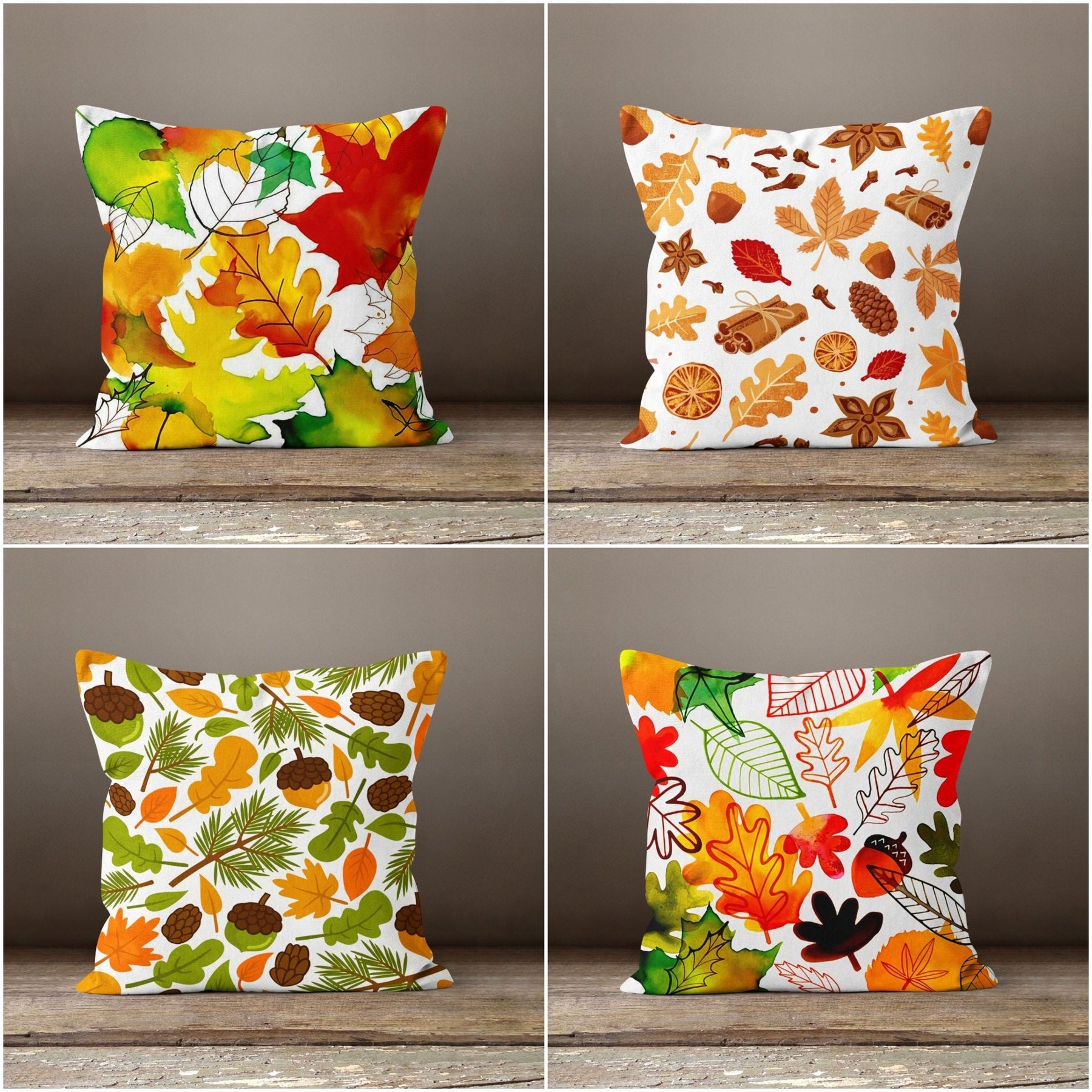 These autumn elegant square decorative rustic farmhouse throw cushion covers with leaves;