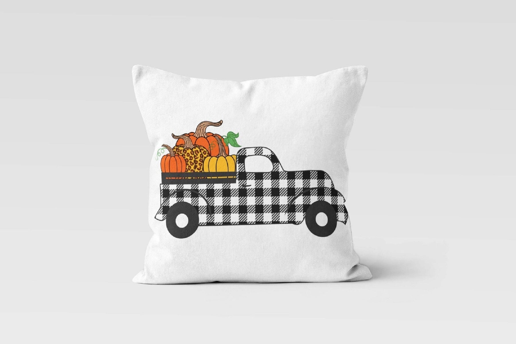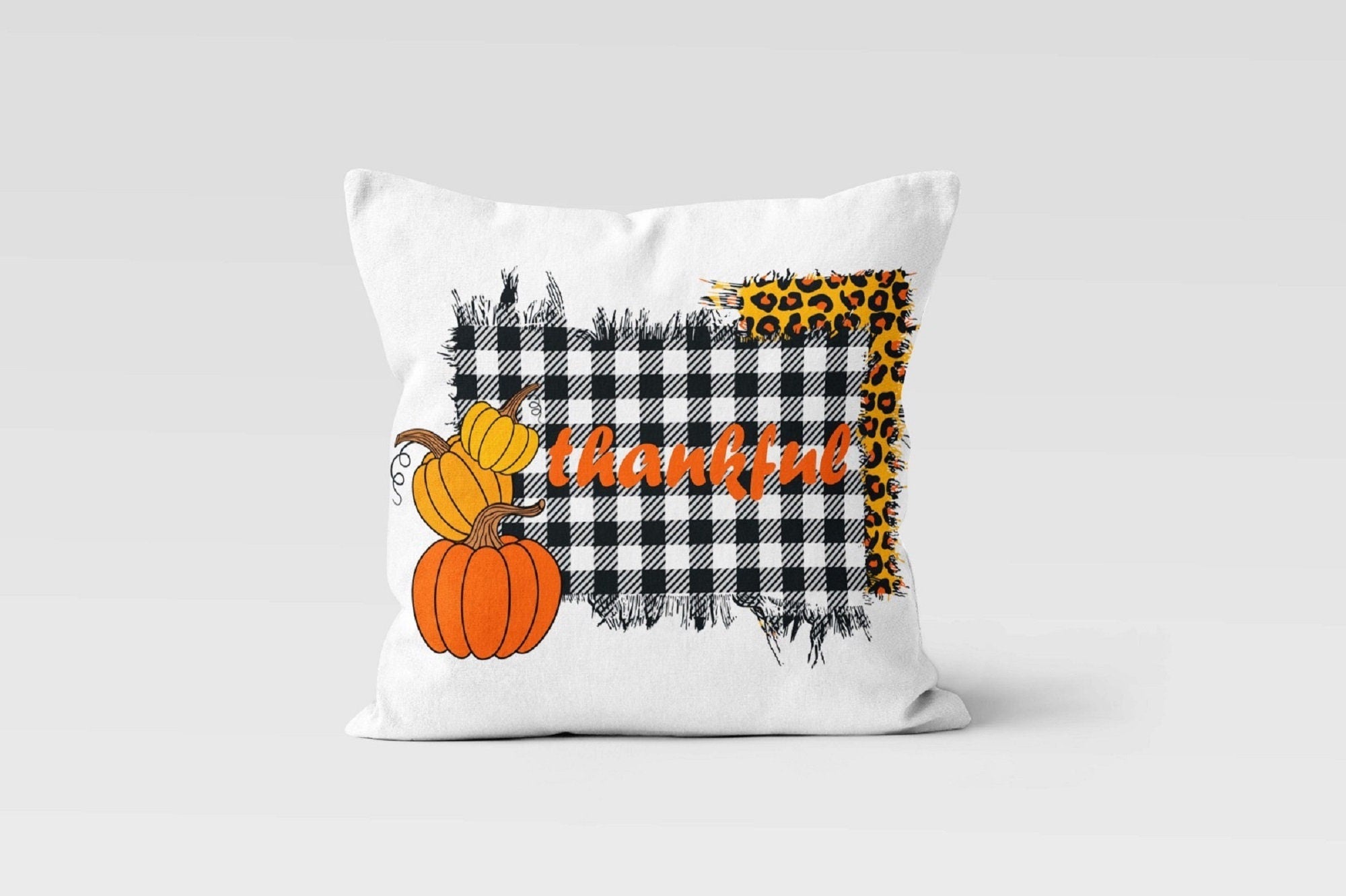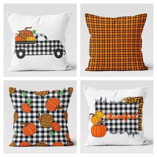 These elegant square decorative rustic farmhouse checkered throw cushion covers with pumpkins, sunflower and leaves;