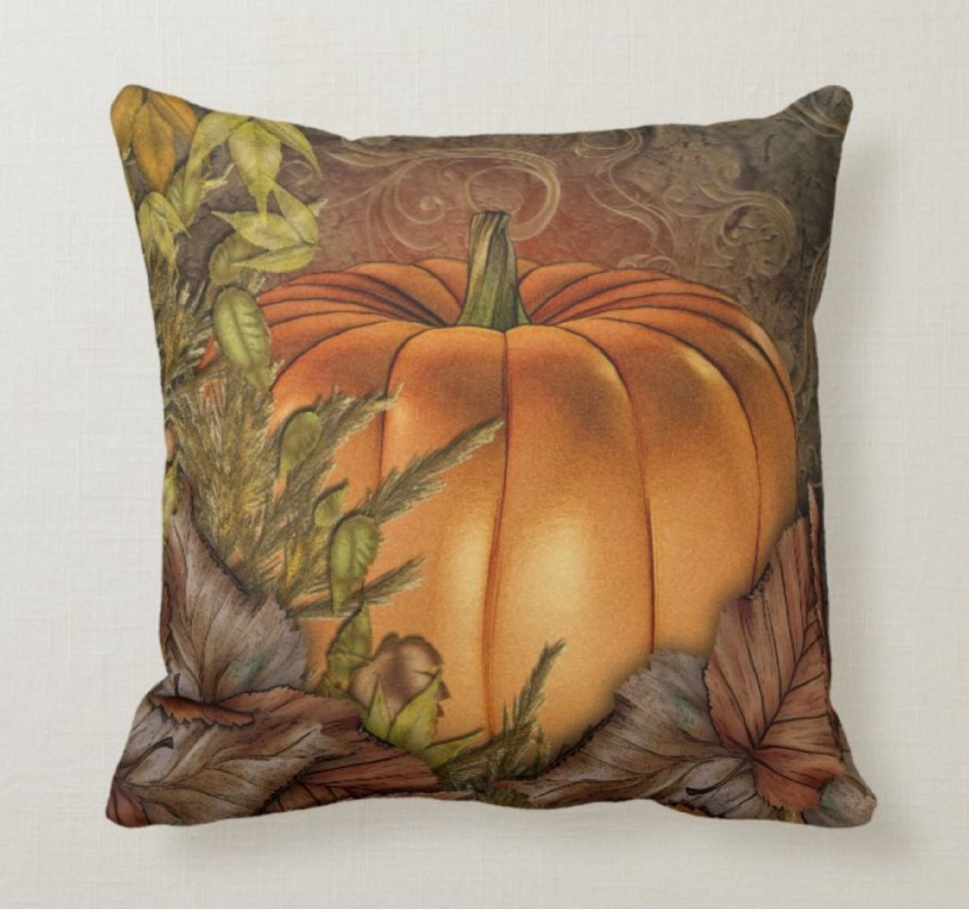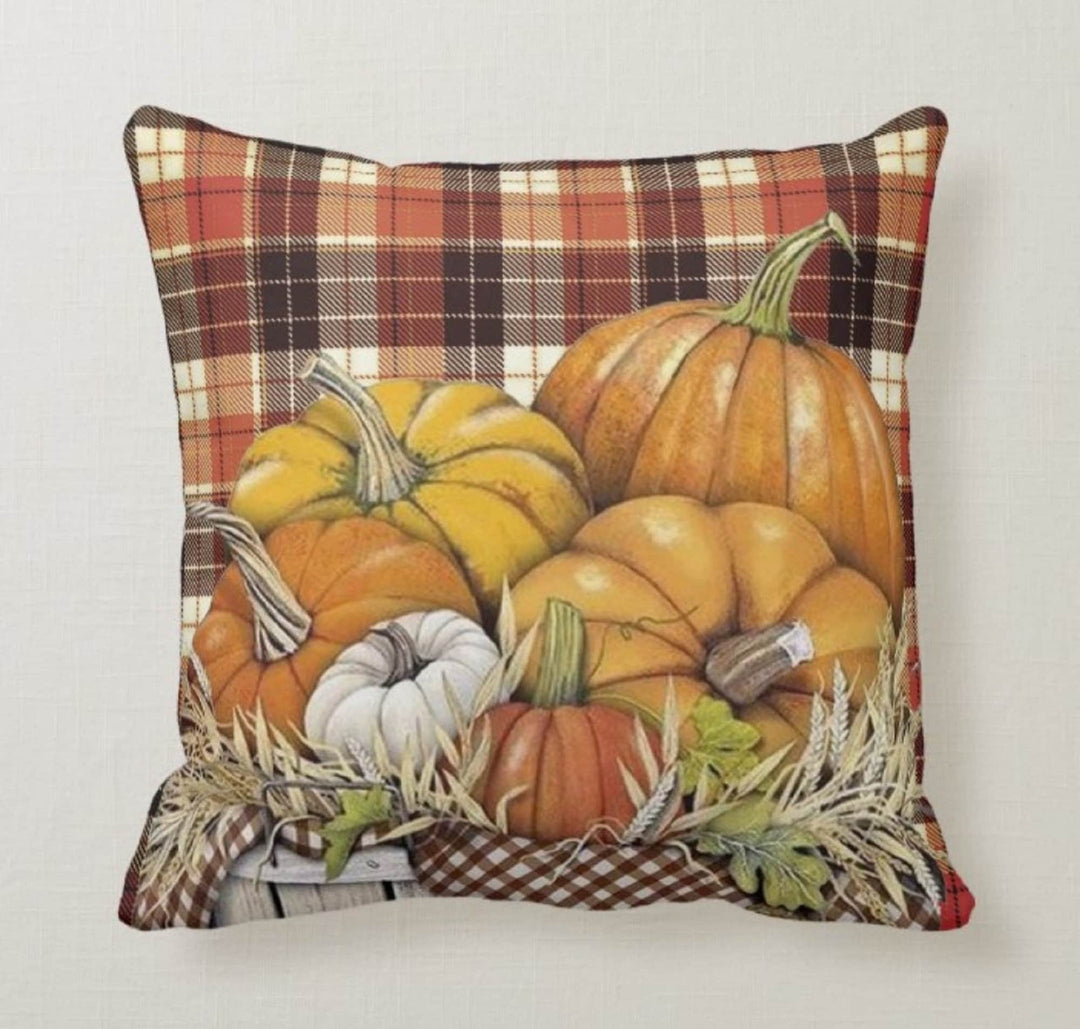 These elegant square decorative checkered rustic farmhouse throw cushion covers with pumpkins;