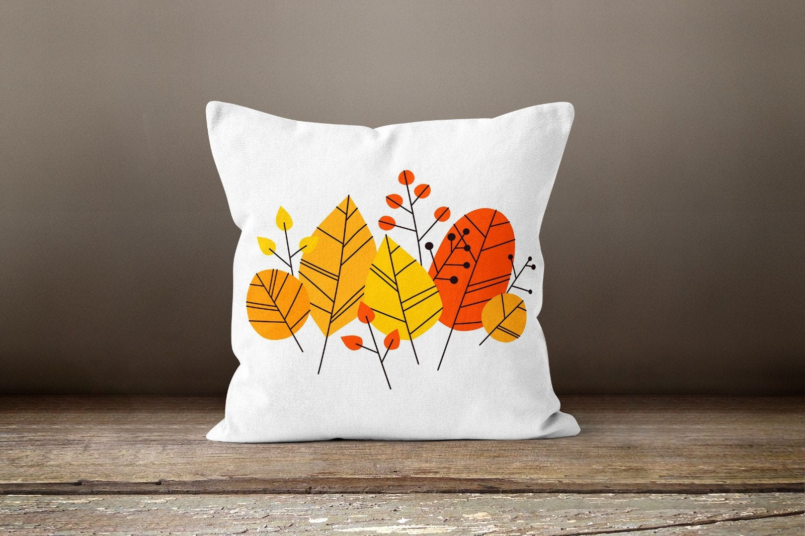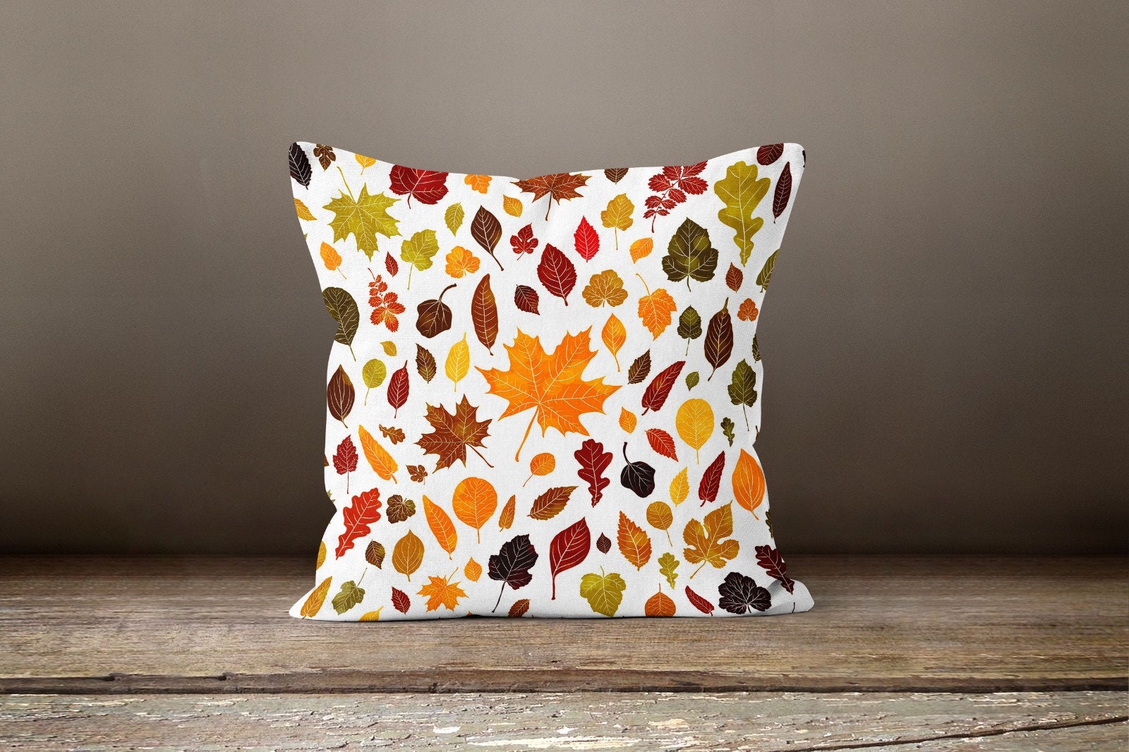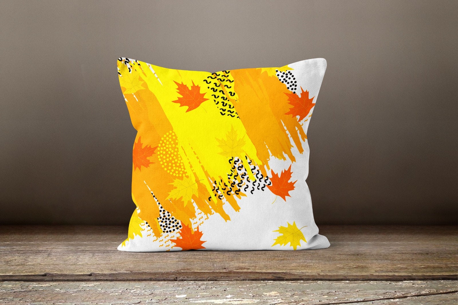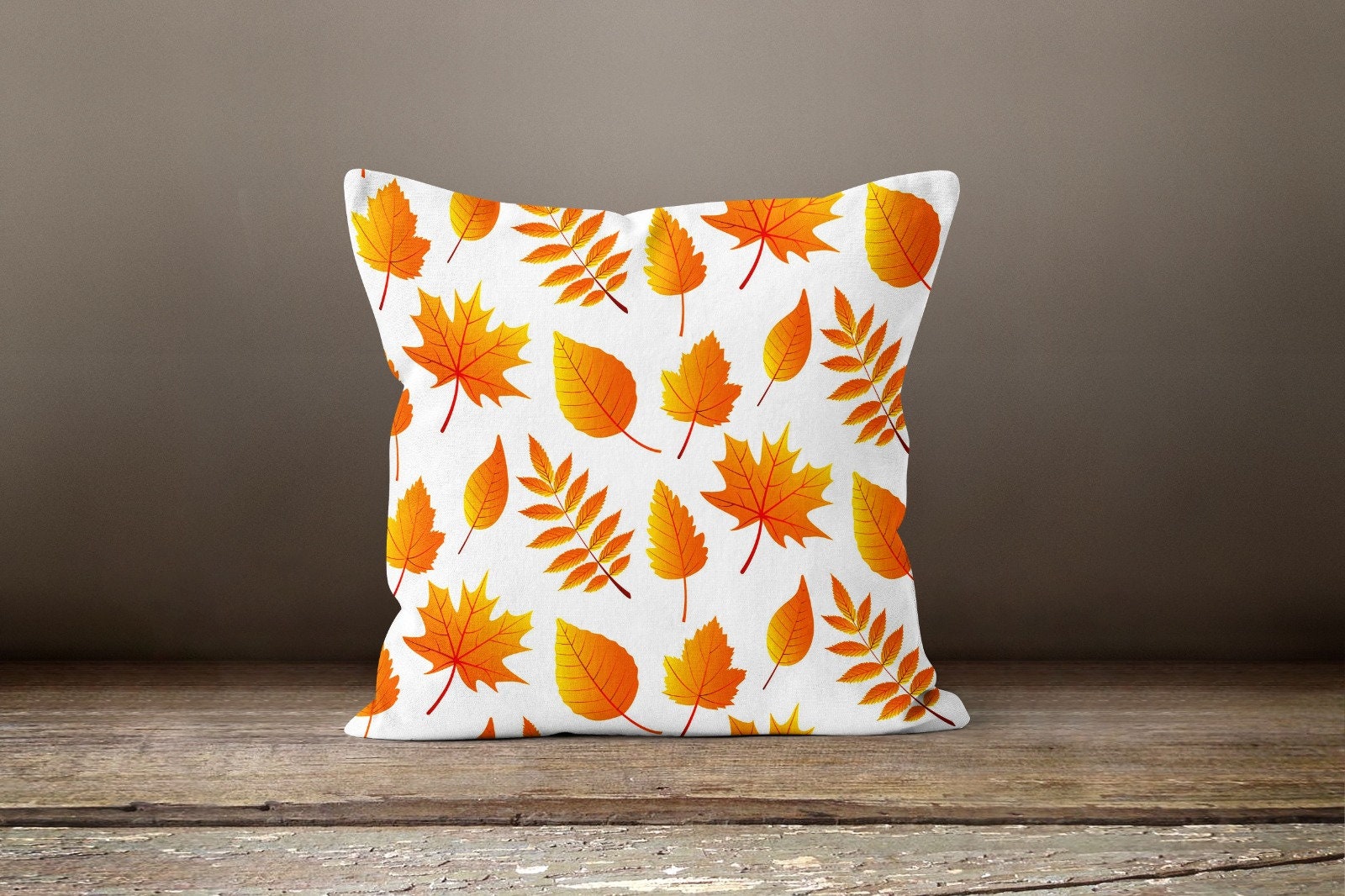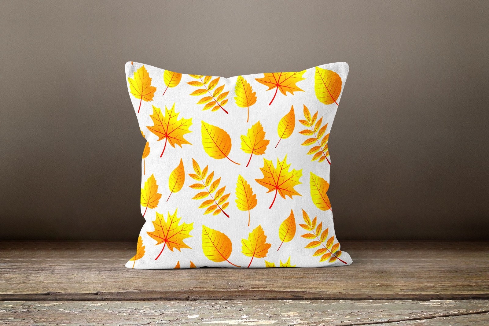 These autumn elegant square decorative rustic farmhouse throw cushion covers with dry orange and yellow leaves;