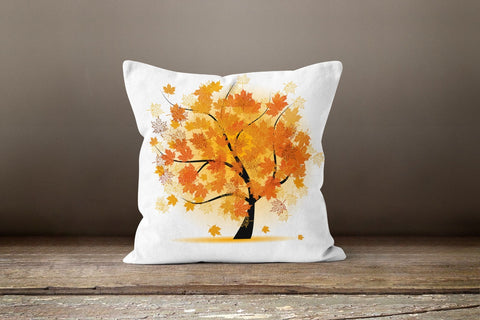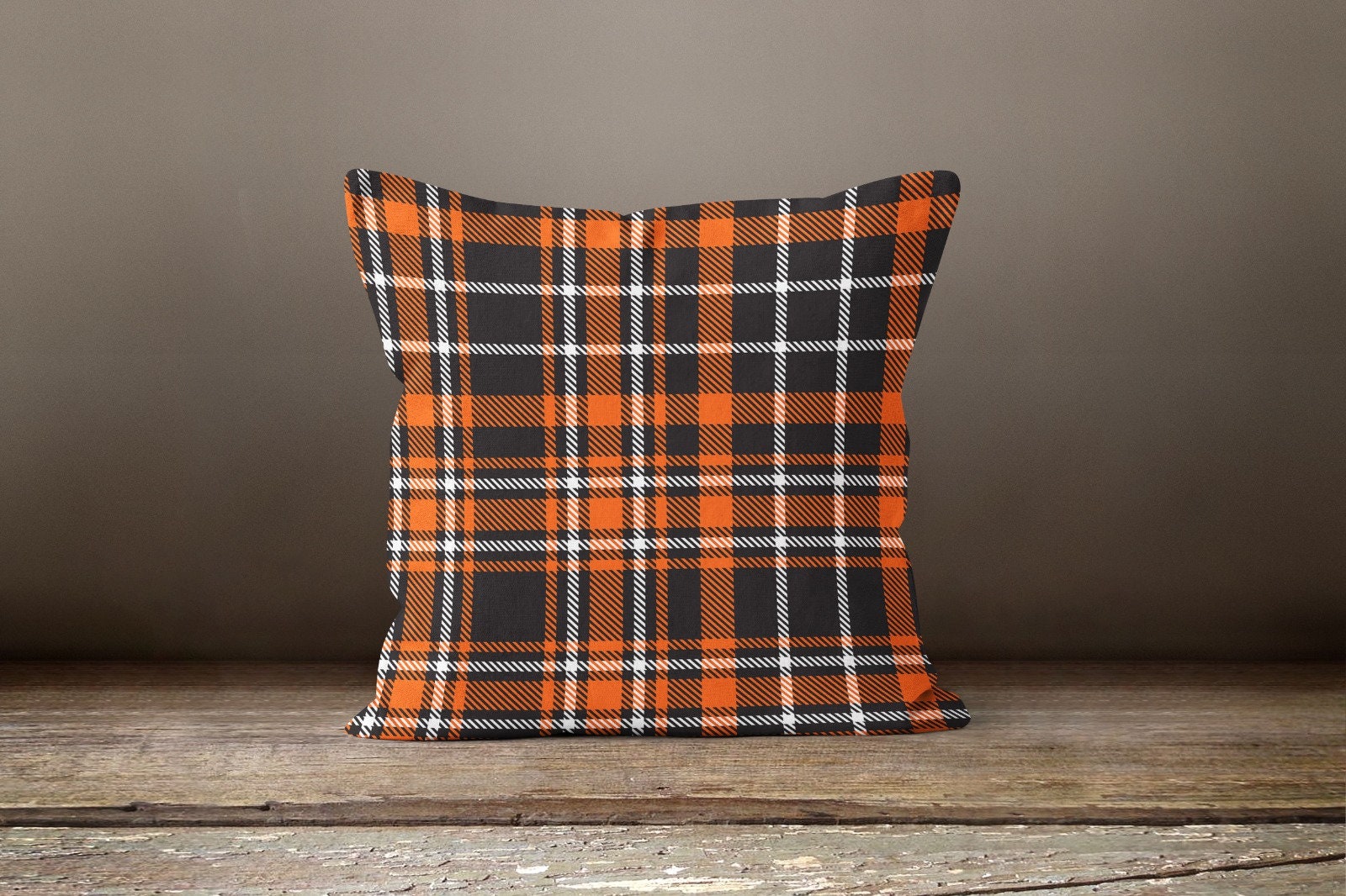 These elegant square decorative rustic farmhouse style throw pillow covers with orange trees, leaves and matching plaid colors design;