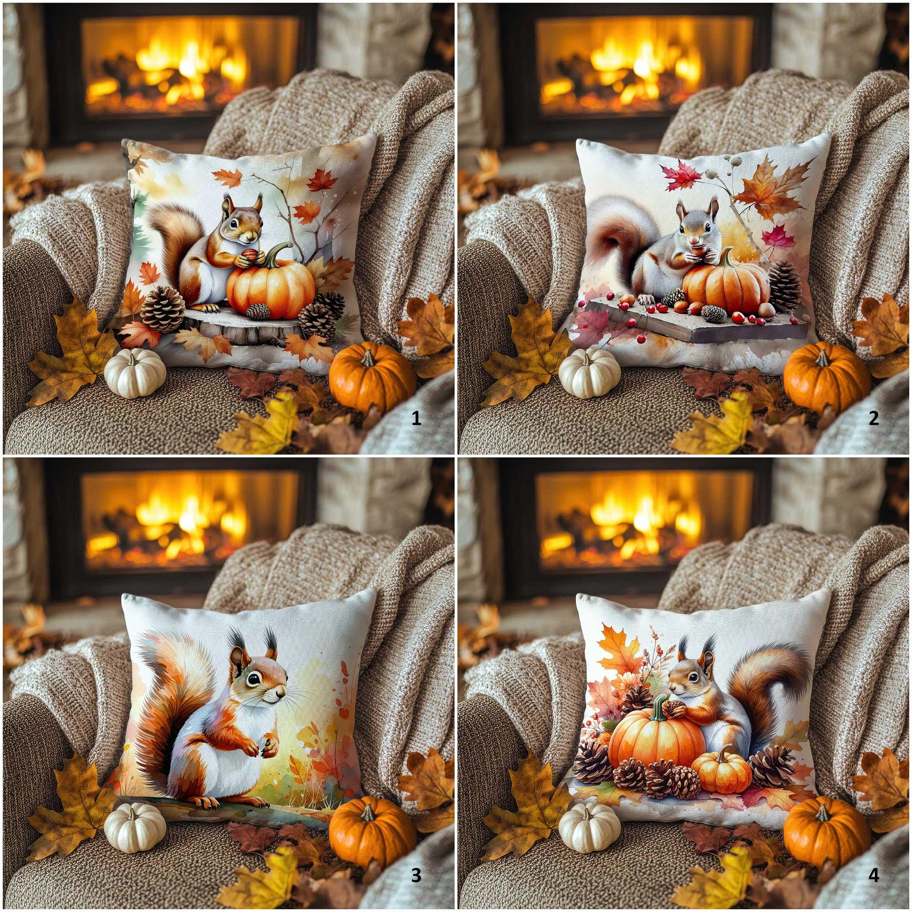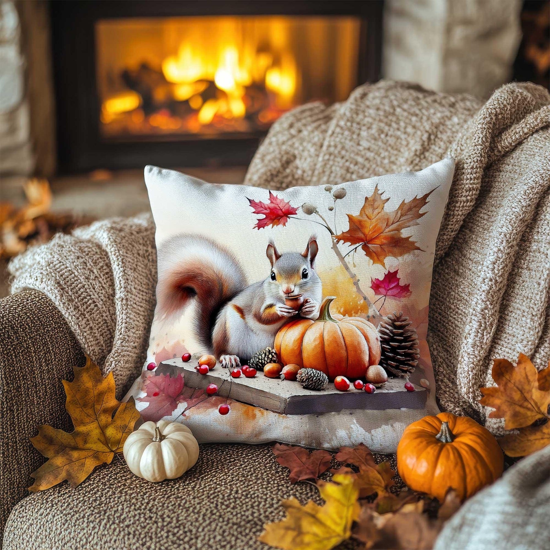 ⚓ These square decorative fall/autumn/Thanksgiving throw pillow covers with Squirrel and Pumpkin prints;