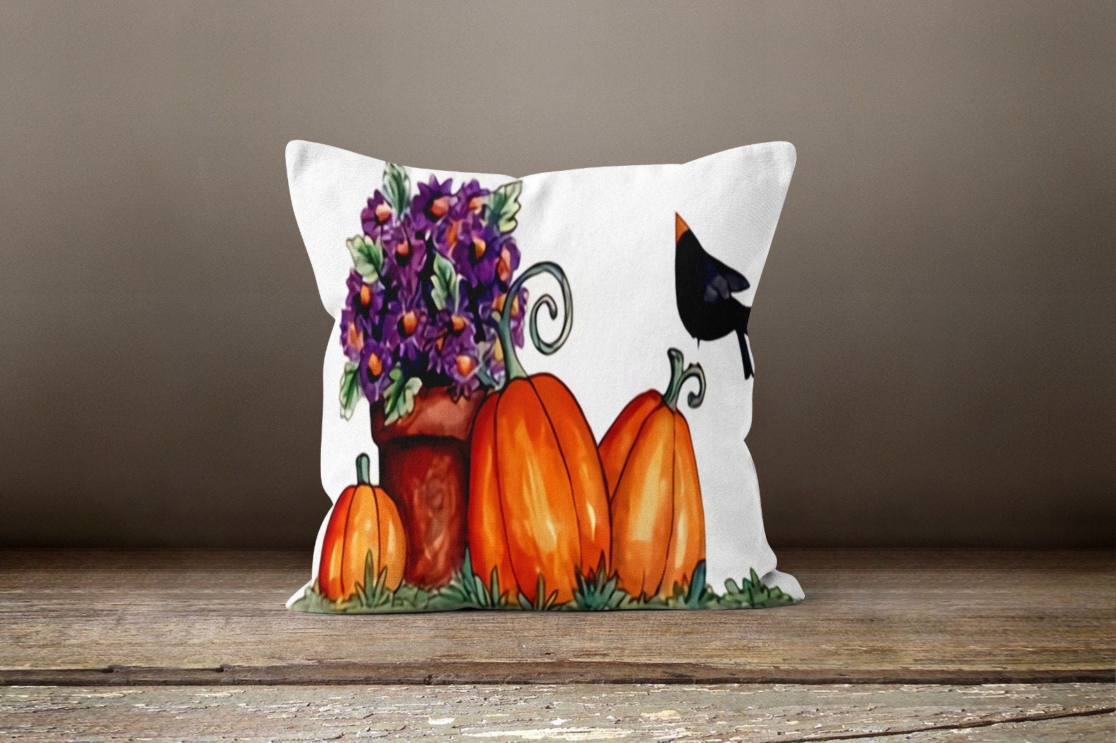 Floral Pumpkin, Blue Truck and Bird Throw Pillow Top