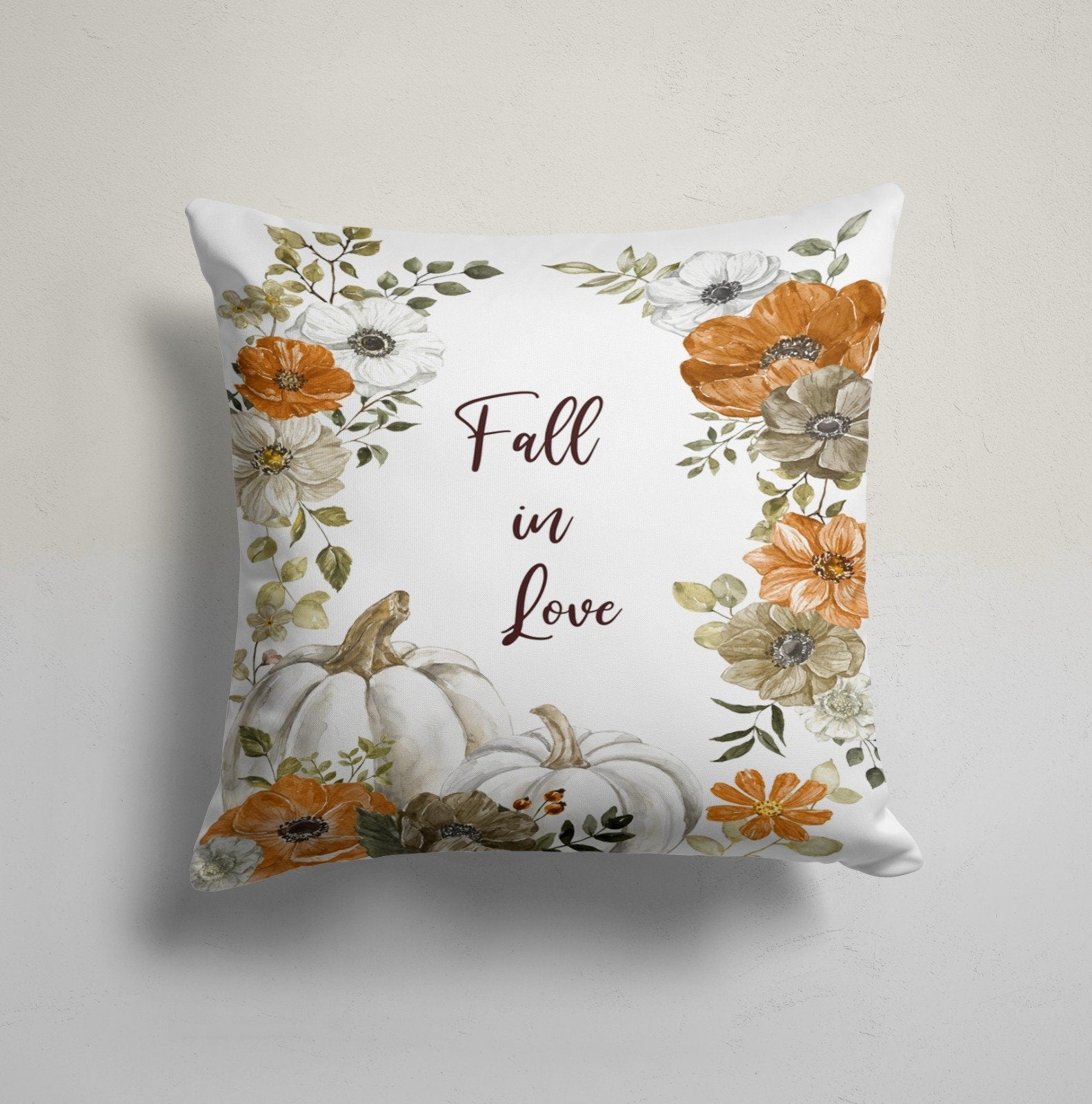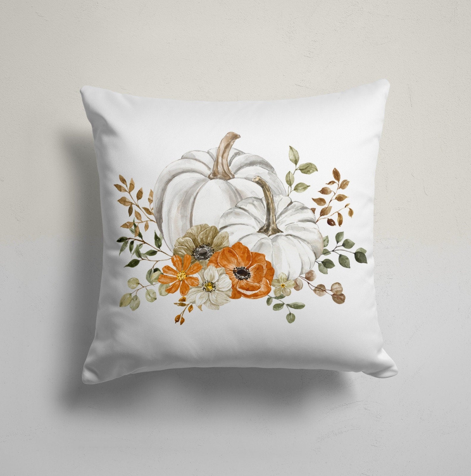 Fall Trend Pillow Cover|Floral White Pumpkin Throw Pillow Case|Autumn Cushion Case|Fall in Love Home Decor|Housewarming Living Room Pillow