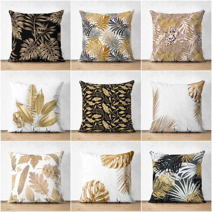 These elegant stylish and high quality suede square pillow covers with gold leaves;