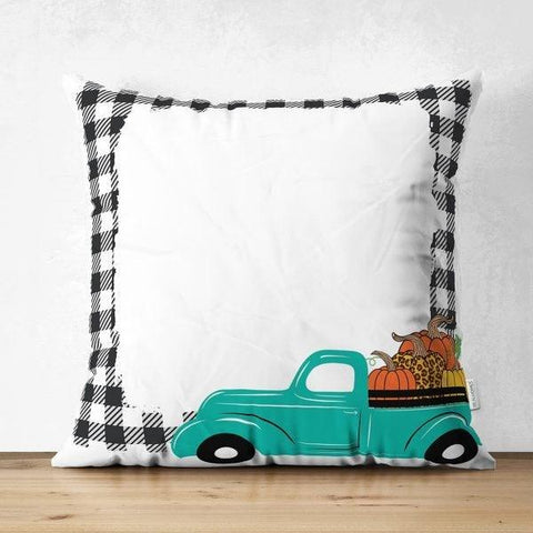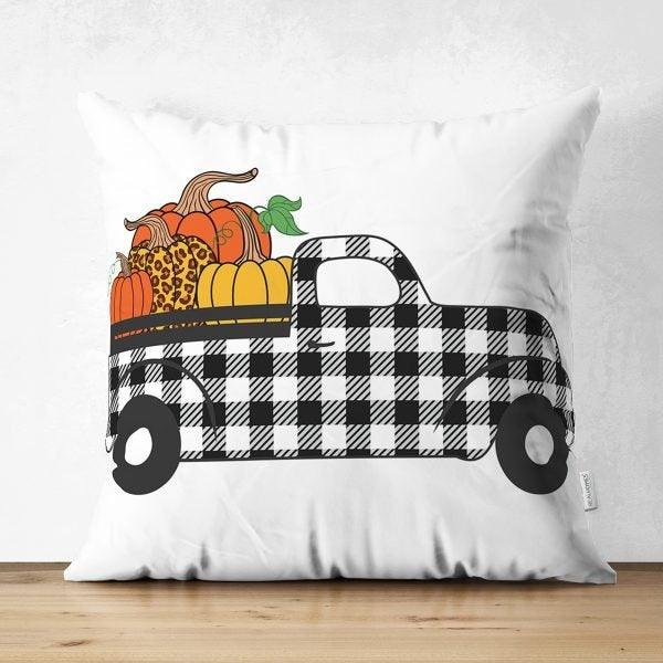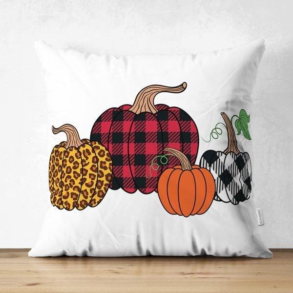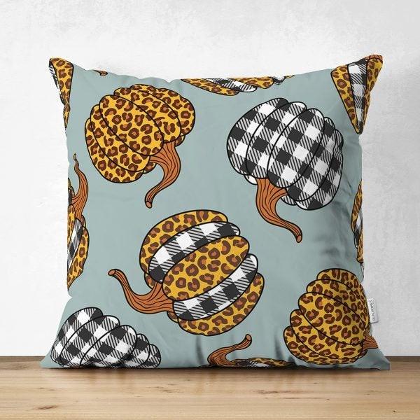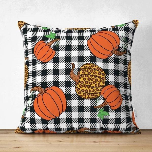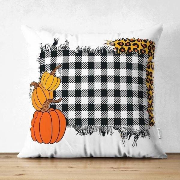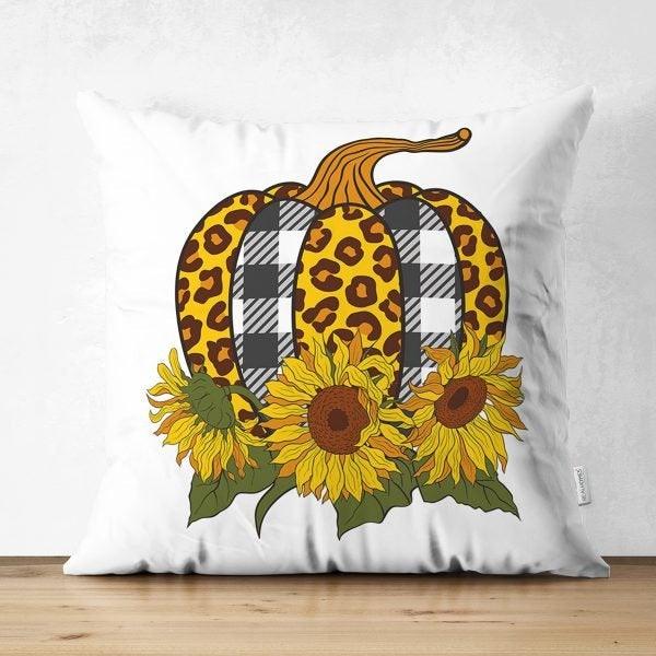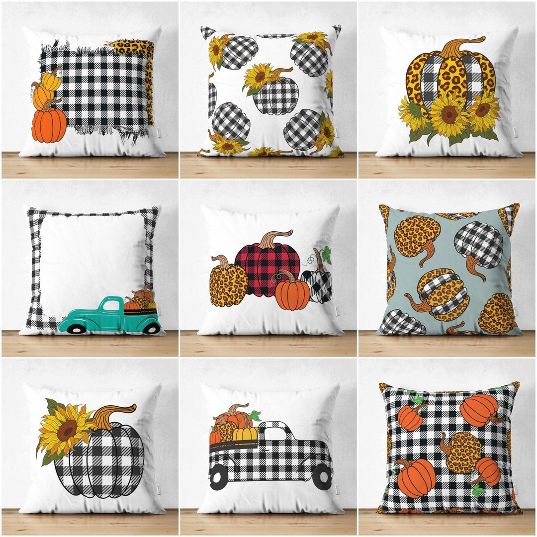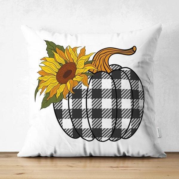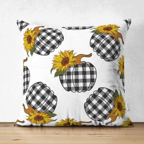 These elegant stylish and high quality suede square checkered throw/lumbar cushion covers with pumpkins and sunflowers;
