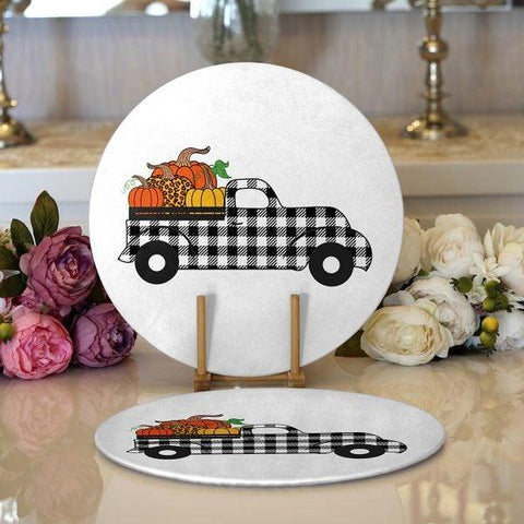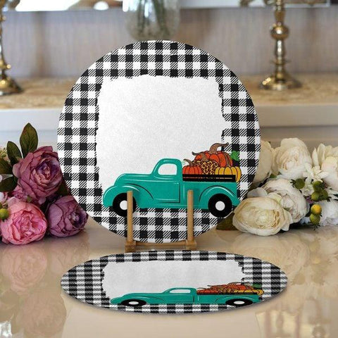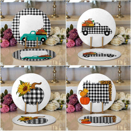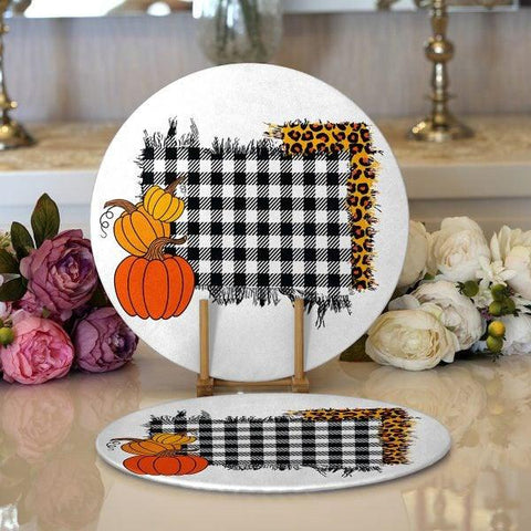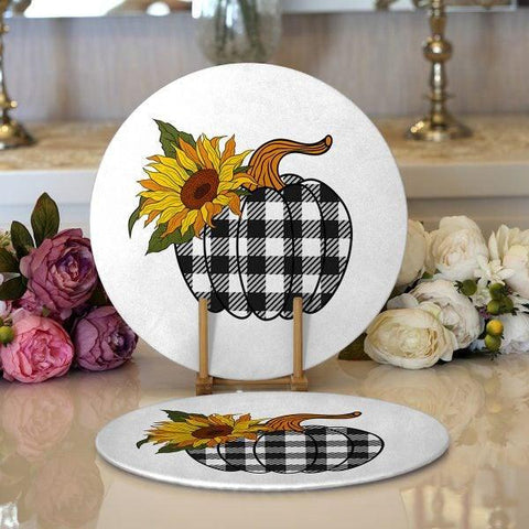Fall Trend Placemat|Set of 2 Pumpkin Supla Table Mat|Checkered Pumpkin Round American Service Dining Underplate|Farmhouse Sunflower Coasters