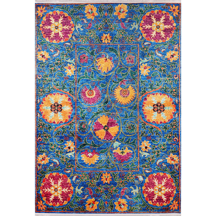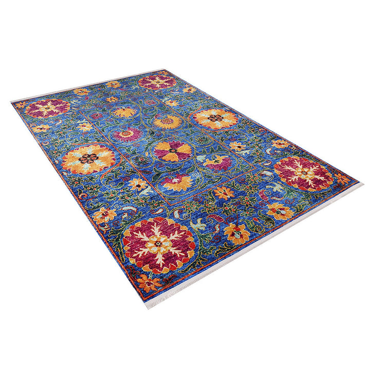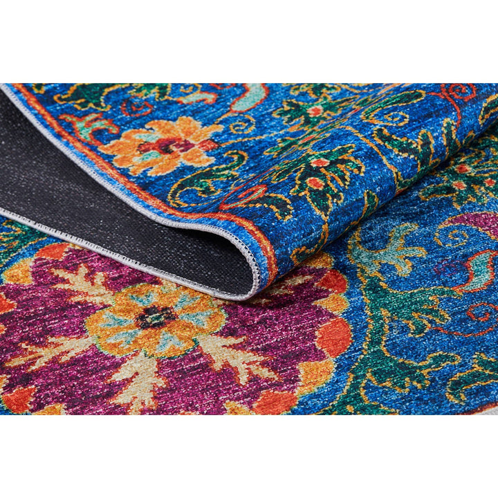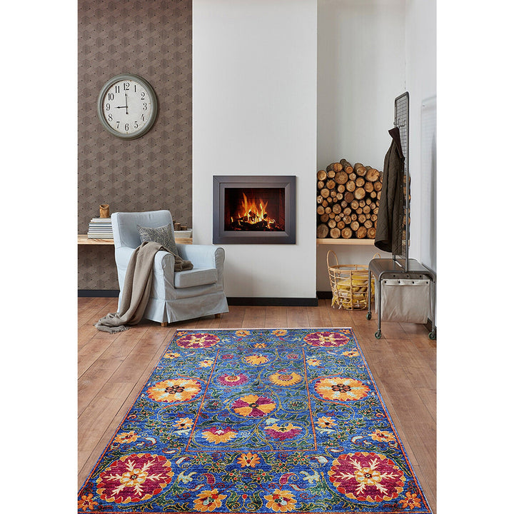 This elegant Machine-Washable floor rug with Karabakh Floral design;