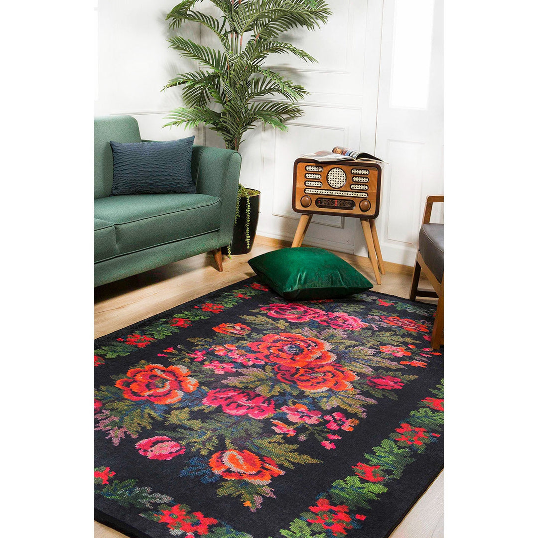 This elegant Machine-Washable floor rug with Karabakh Floral design;
