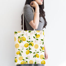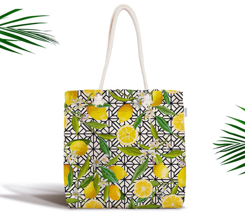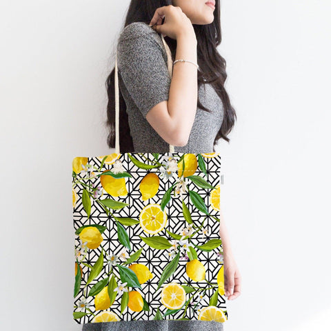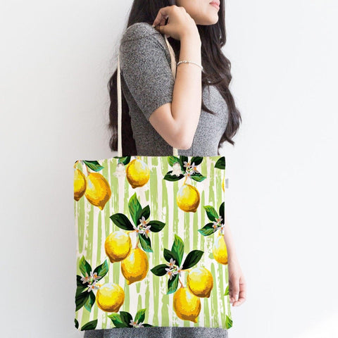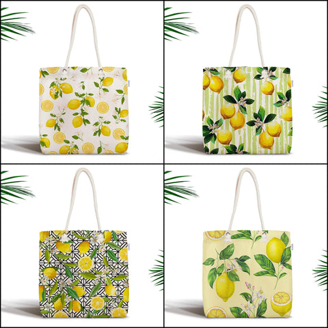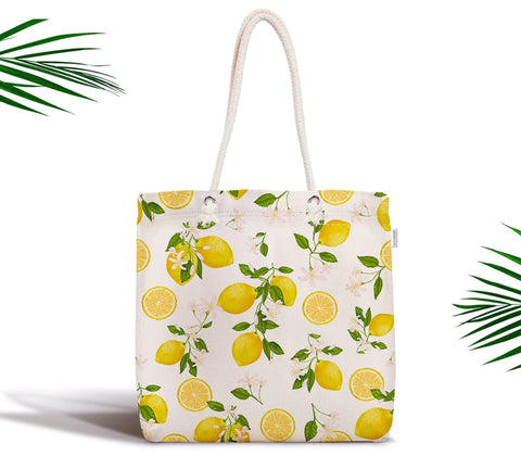 Floral Lemon Shoulder Bag|Summer Trends Fabric Bag|Lemon Shopping Bag|Fresh Citrus Bag|Lemon Beach Tote Bag|Gift for Her|Yellow Lemon Bag