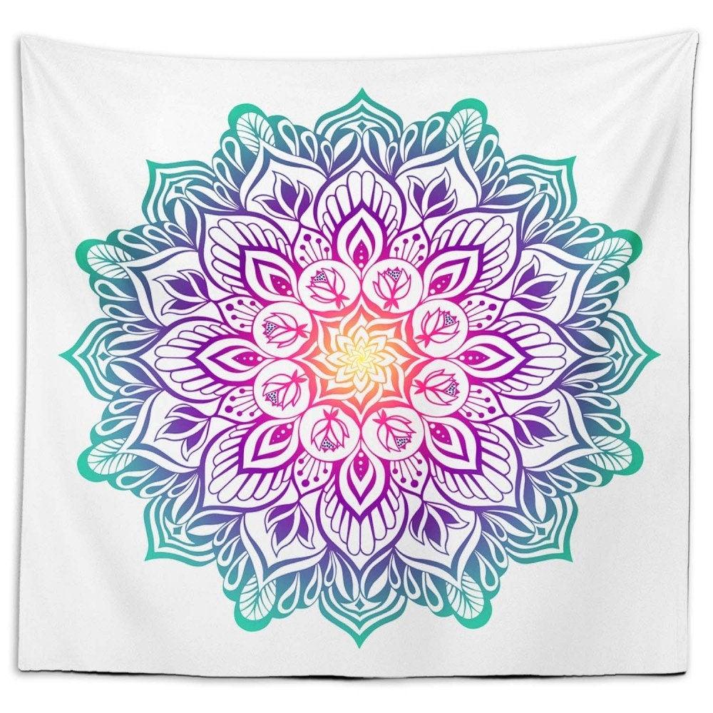 This elegant square fabric wall hanging decor with blue/purple/pink mandala flower prints reflect your life perspective and;