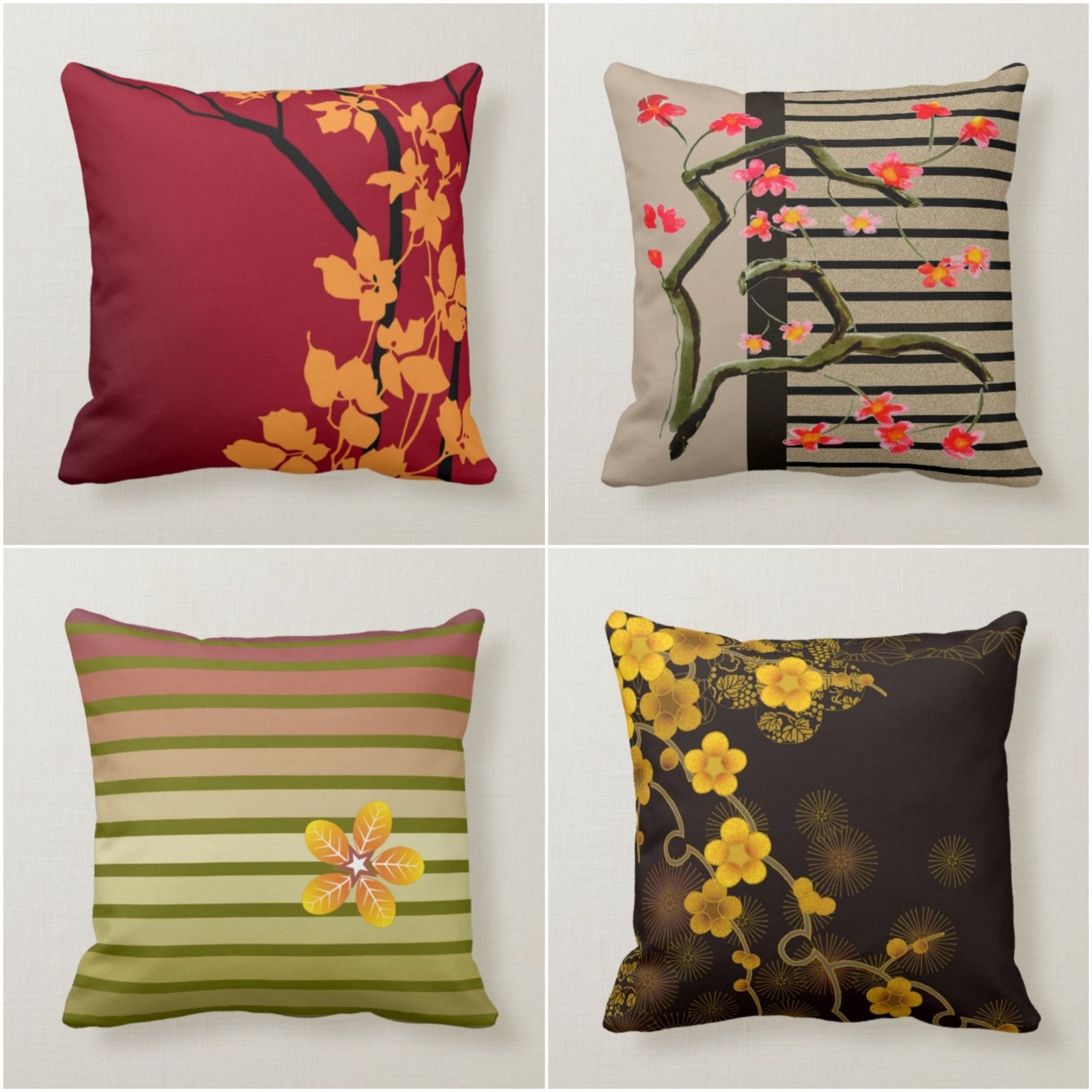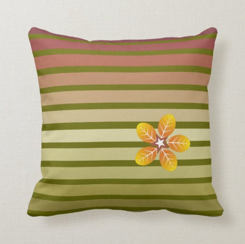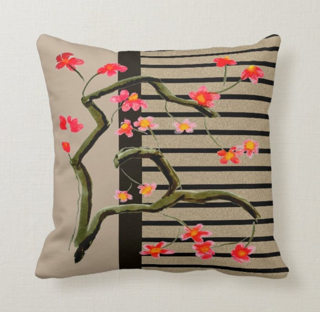 Floral Pillow Cover|Flowers on The Branch|Decorative Pillow Case|Housewarming Striped Floral Cushion Case|Summer Trend Throw Pillow Cover