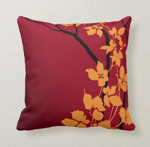 These floral square decorative farmhouse throw pillow covers with flowers on the branch;