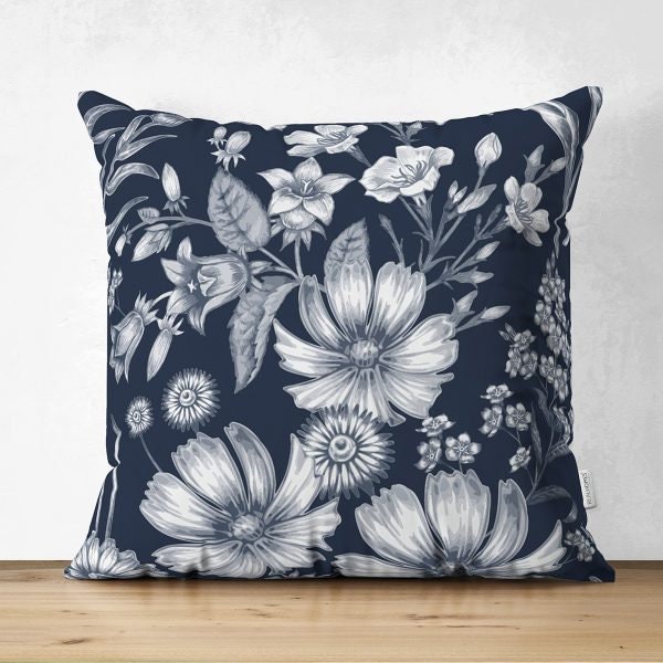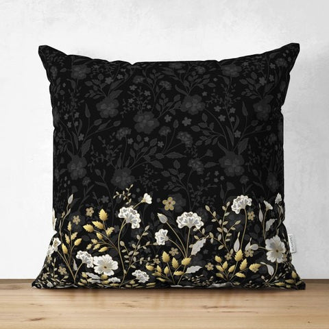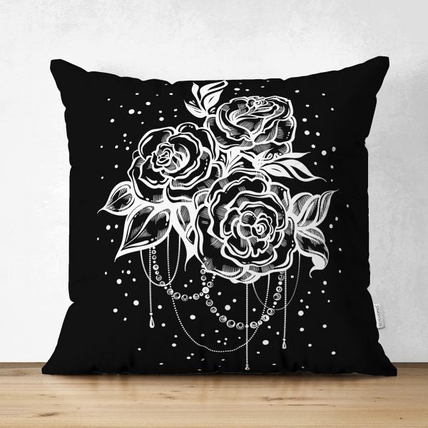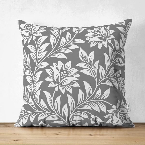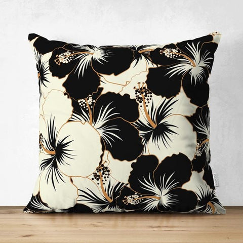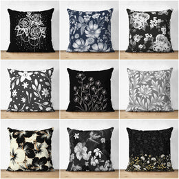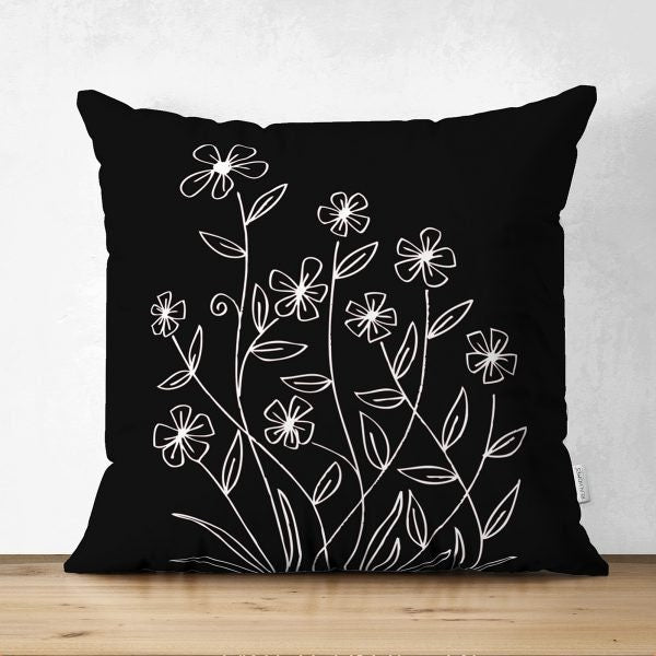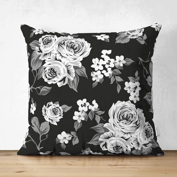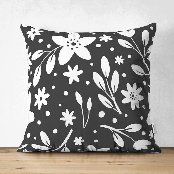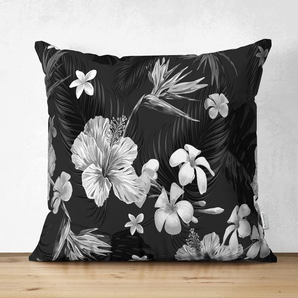 Floral Pillow Cover|Summer Trend Cushion Case|White and Black Floral Decor|Decorative Suede Floral Cushion Cover|Digital Print Spring Trend