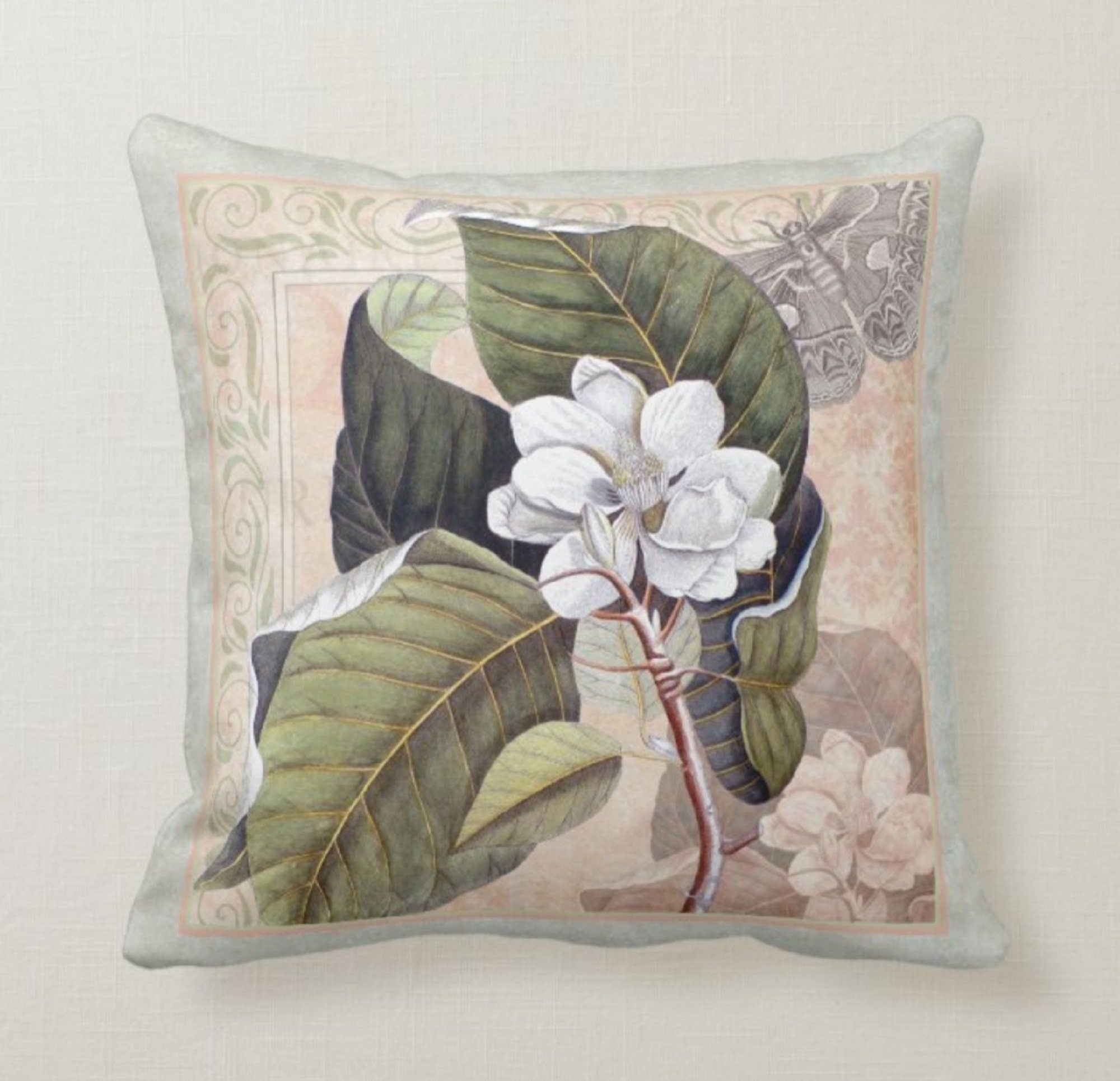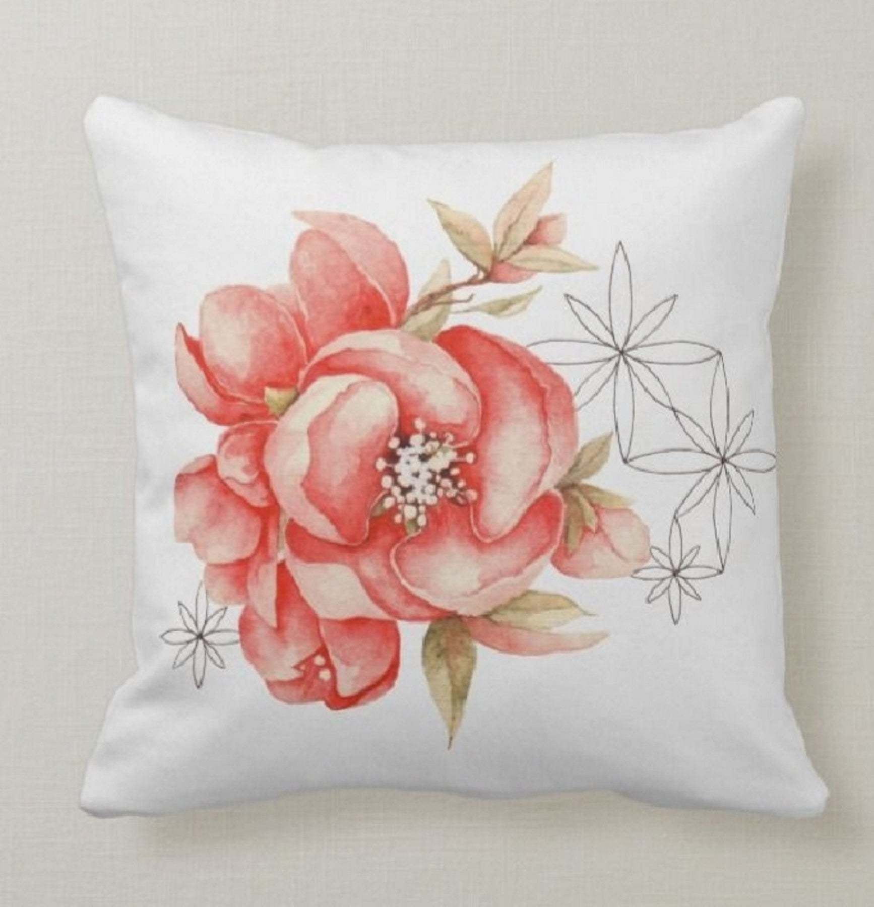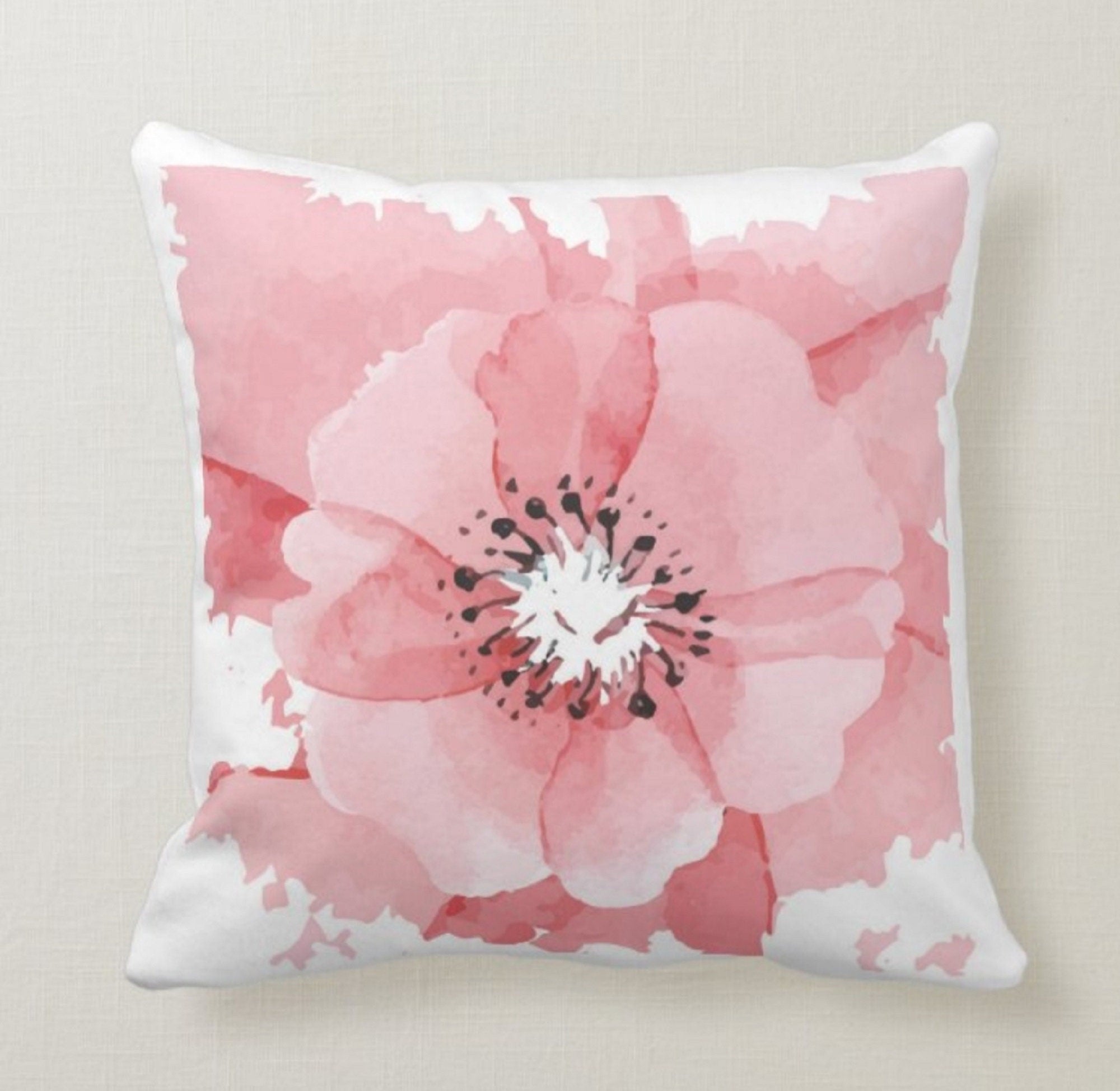 White Pink Floral Throw Pillow Cases