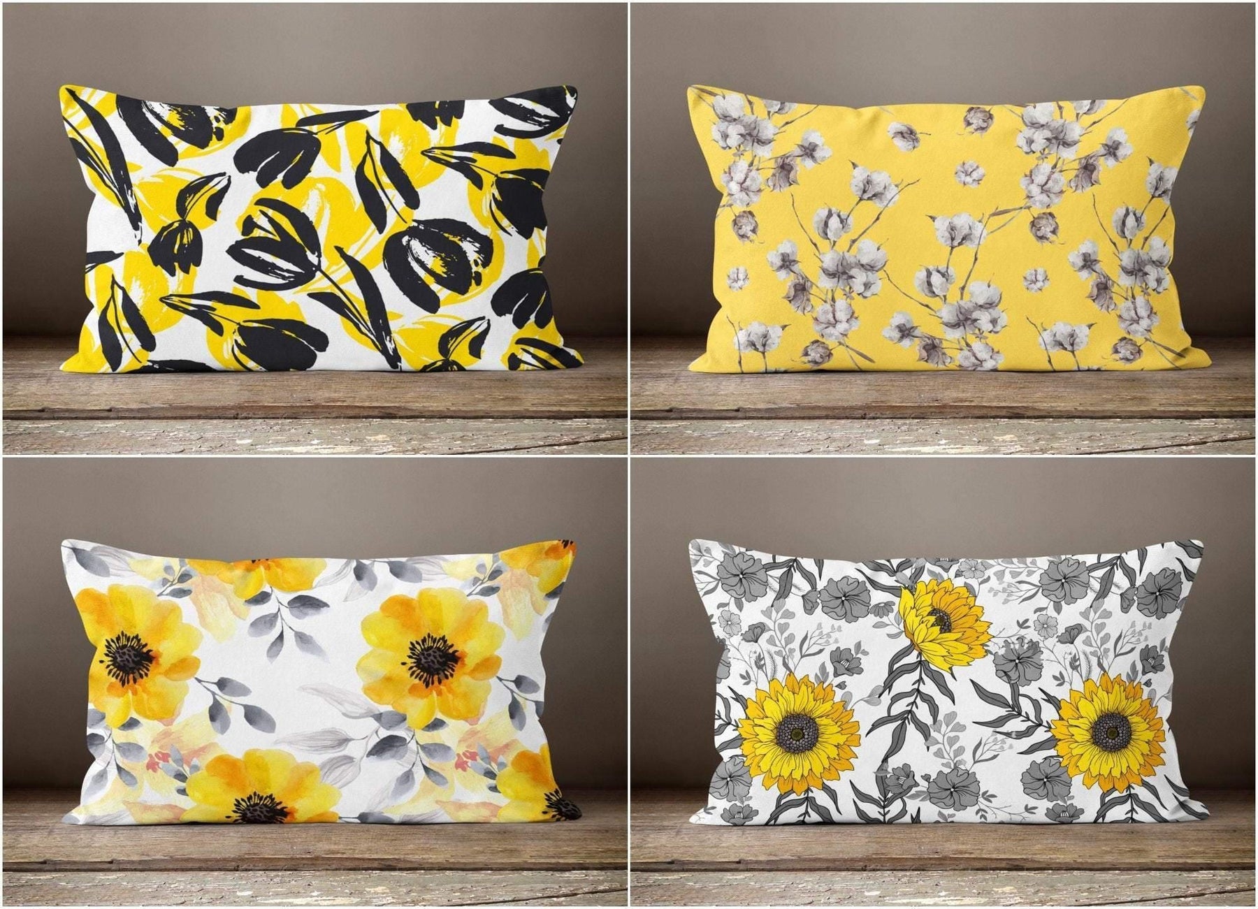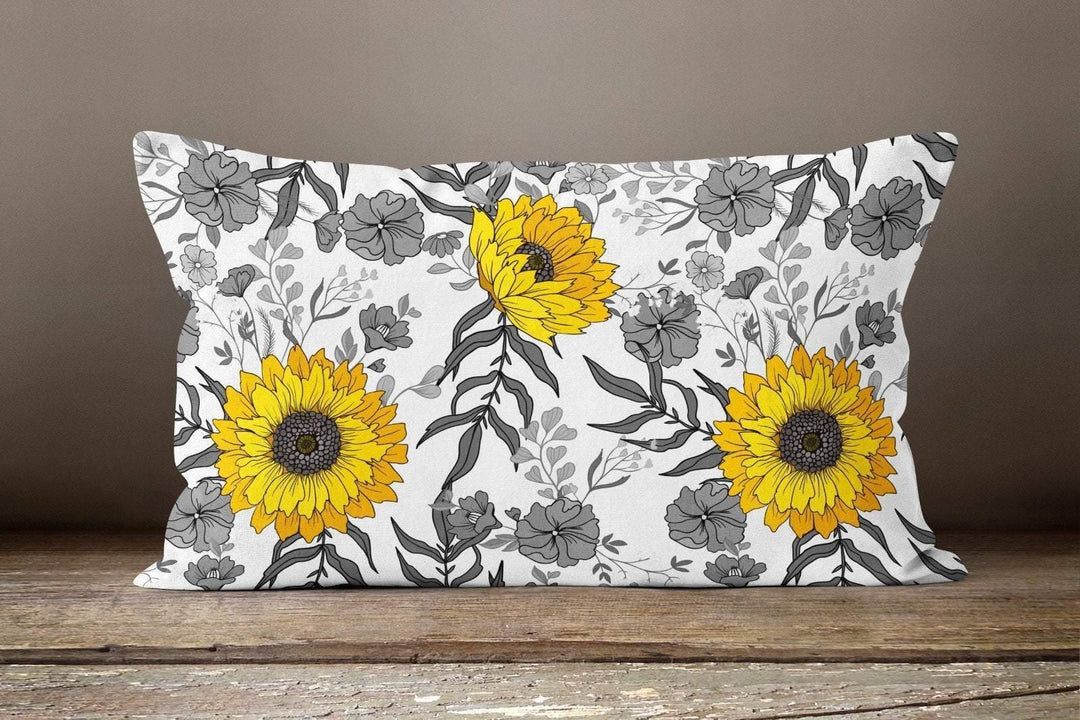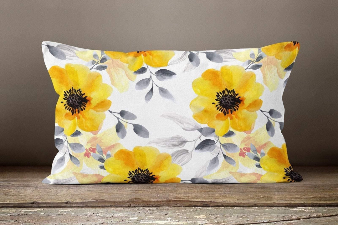 These decorative rectangular beach house throw/lumbar pillow covers with Yellowish Flowers;