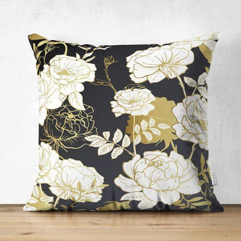 White and Black Floral Cushion Case