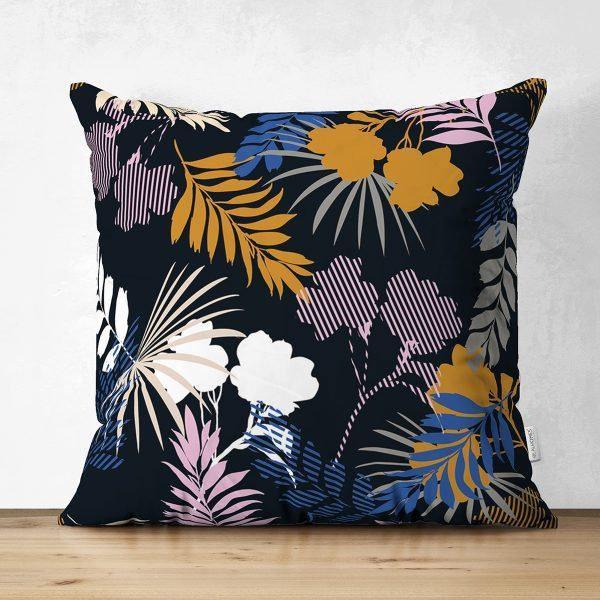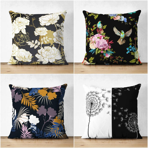 Floral Pillow Cover|White and Black Floral Decor|Summer Trend Cushion Case|Decorative Suede Floral Cushion Cover|Digital Print Spring Trend