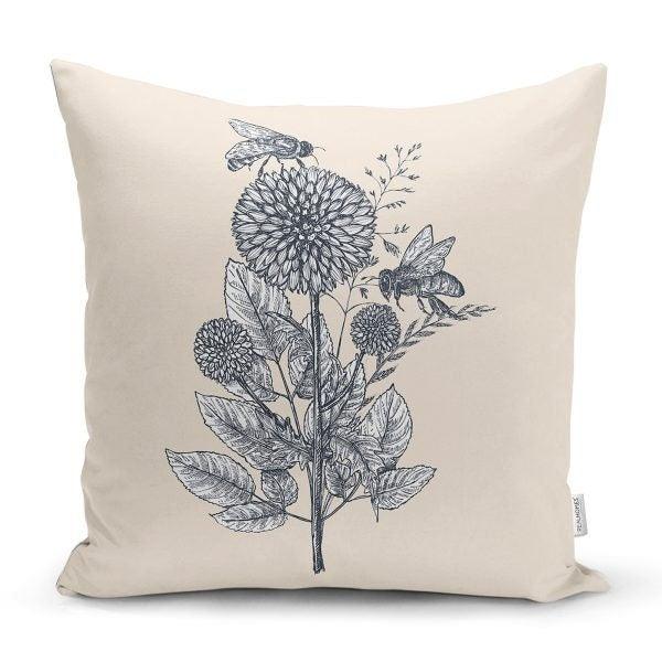 These elegant square decorative throw pillow covers with gray floral prints and bees;