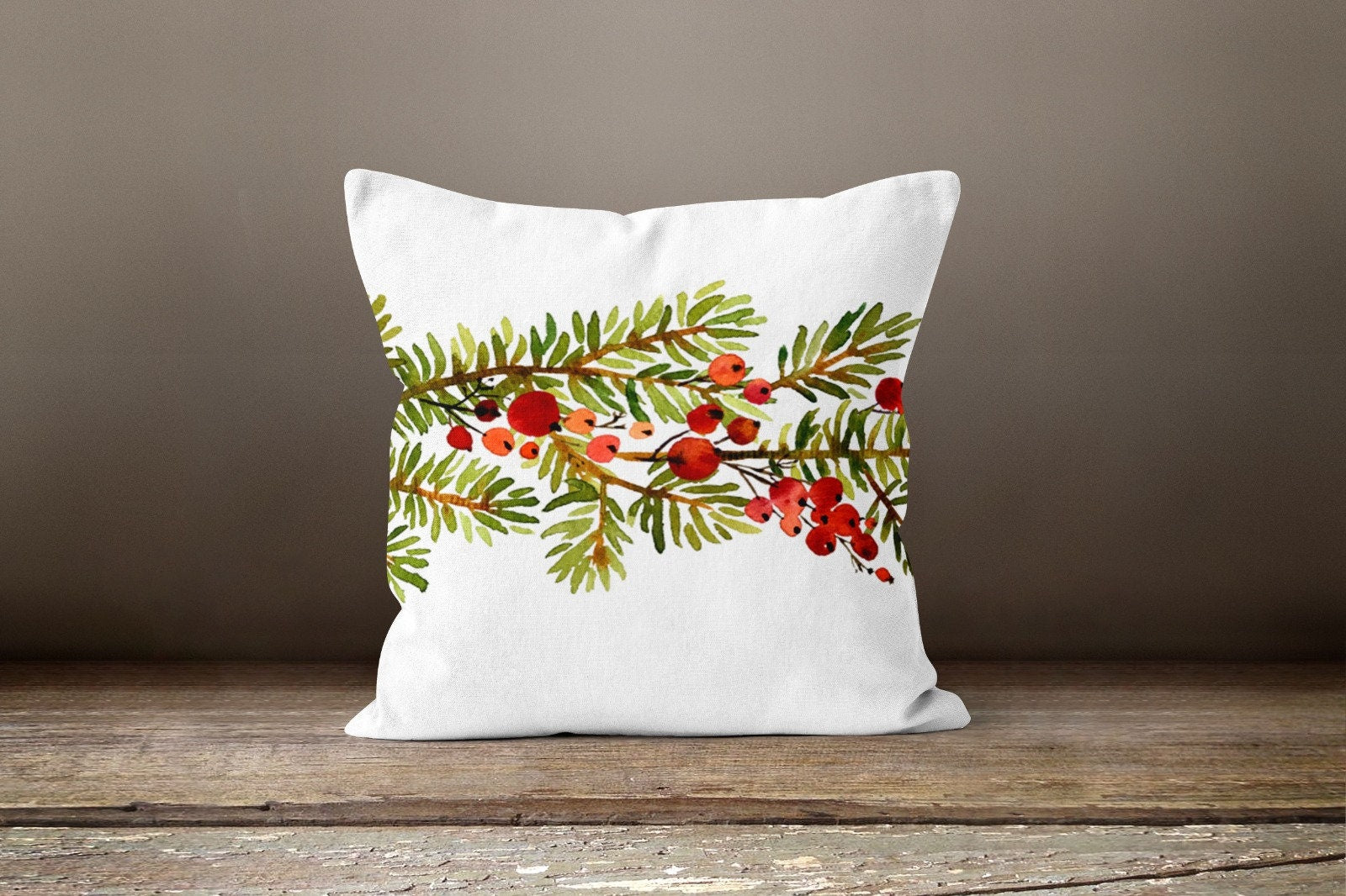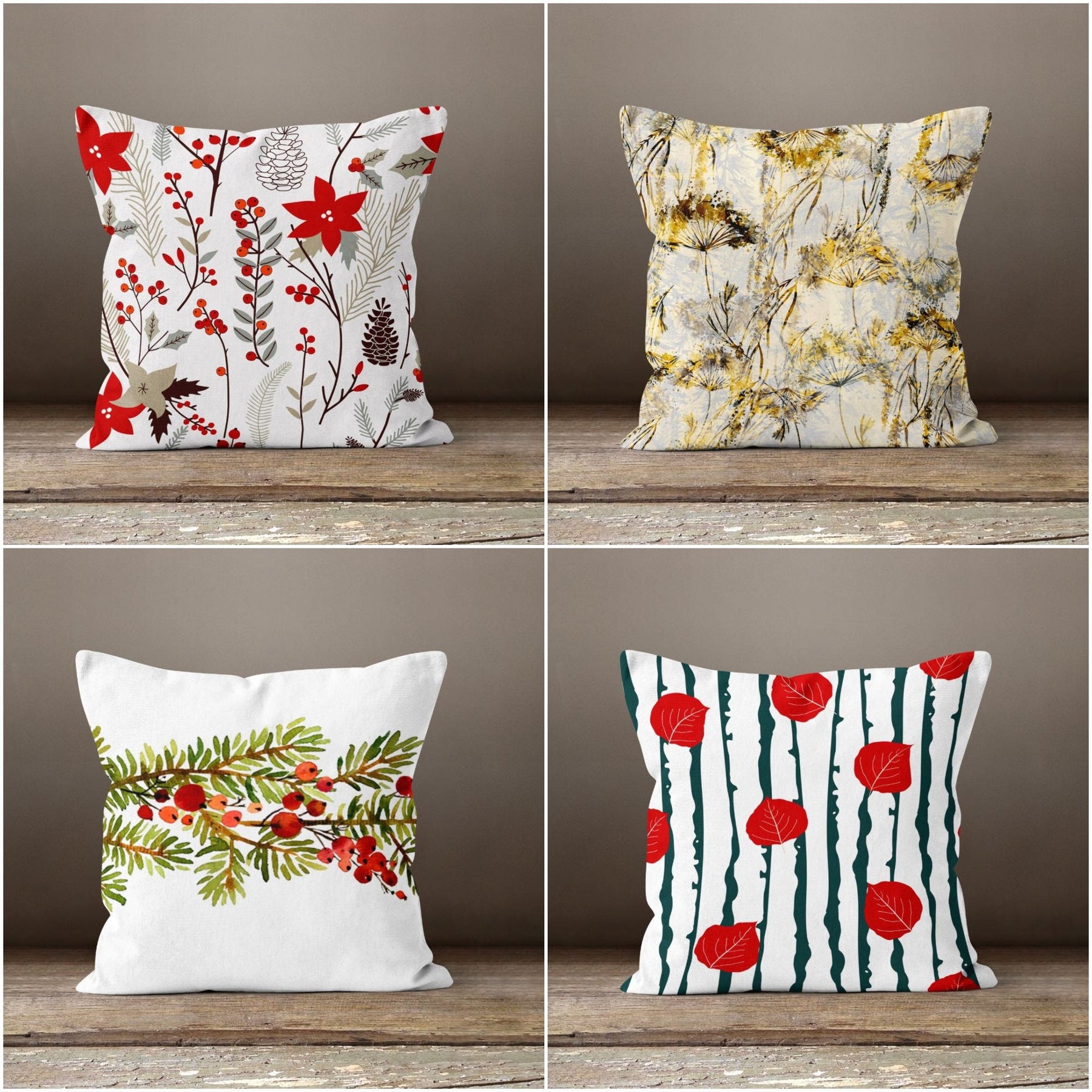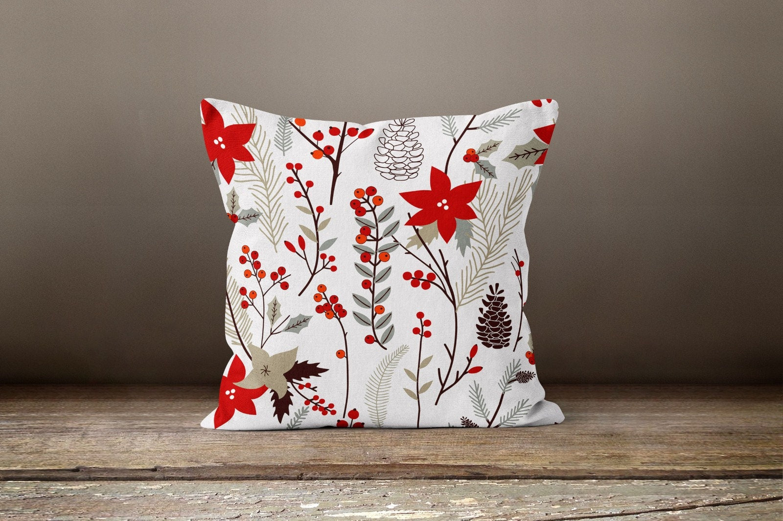 These elegant square decorative rustic farmhouse throw/lumbar cushion covers with red flowers, red leaves, beige flower painting and red berries;