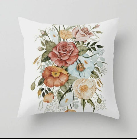 These floral square decorative farmhouse throw pillow covers with different types of flowers;