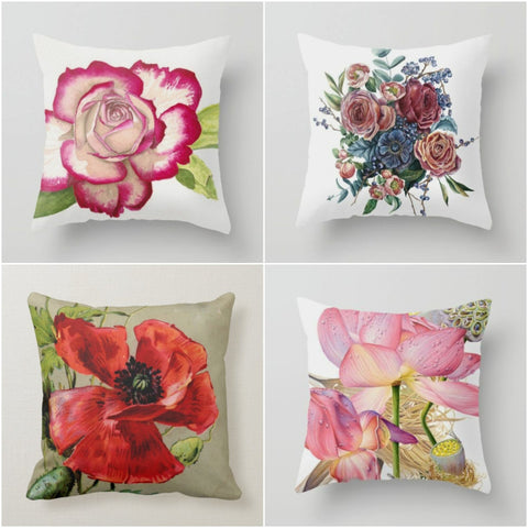 These floral square decorative farmhouse throw pillow covers with different types of flowers;