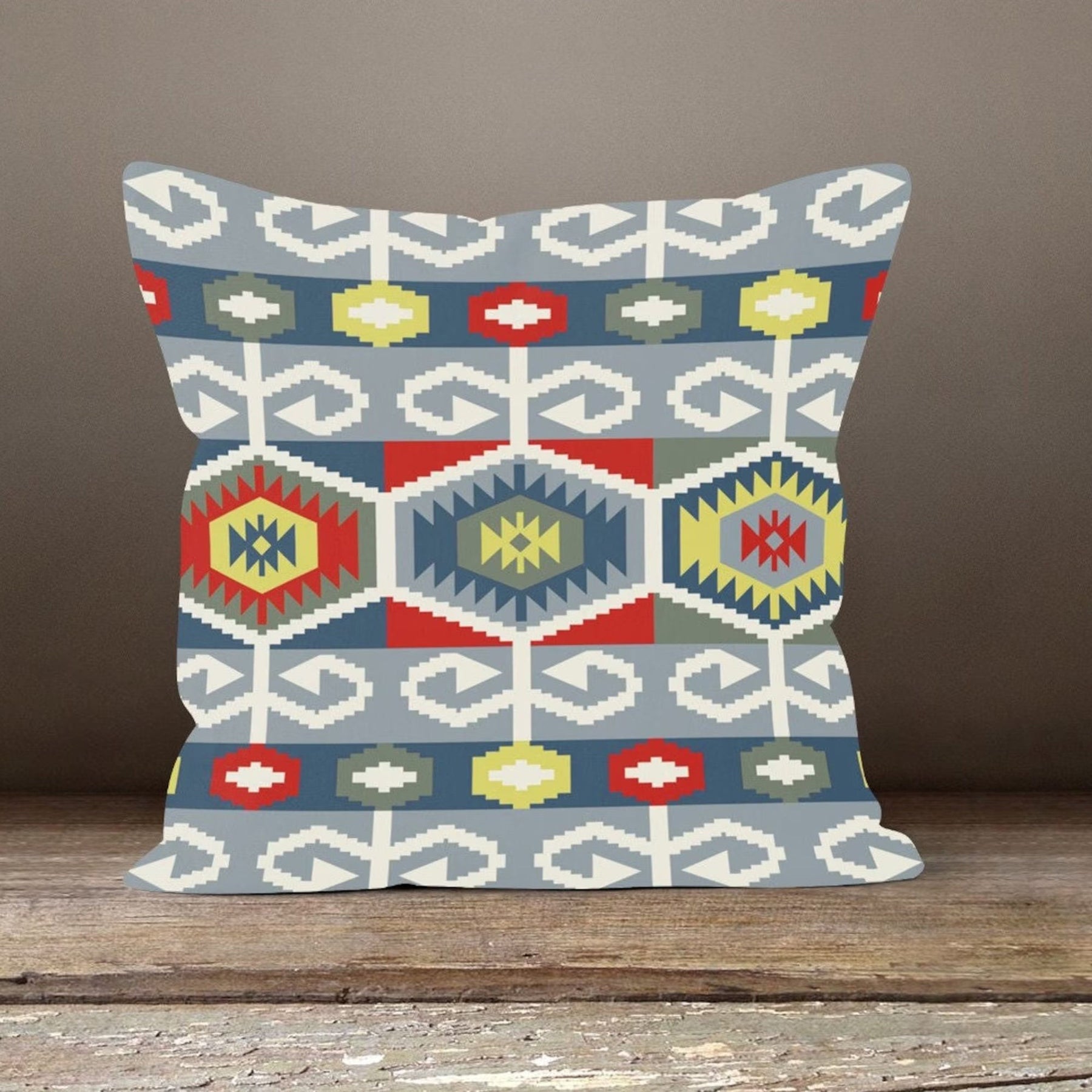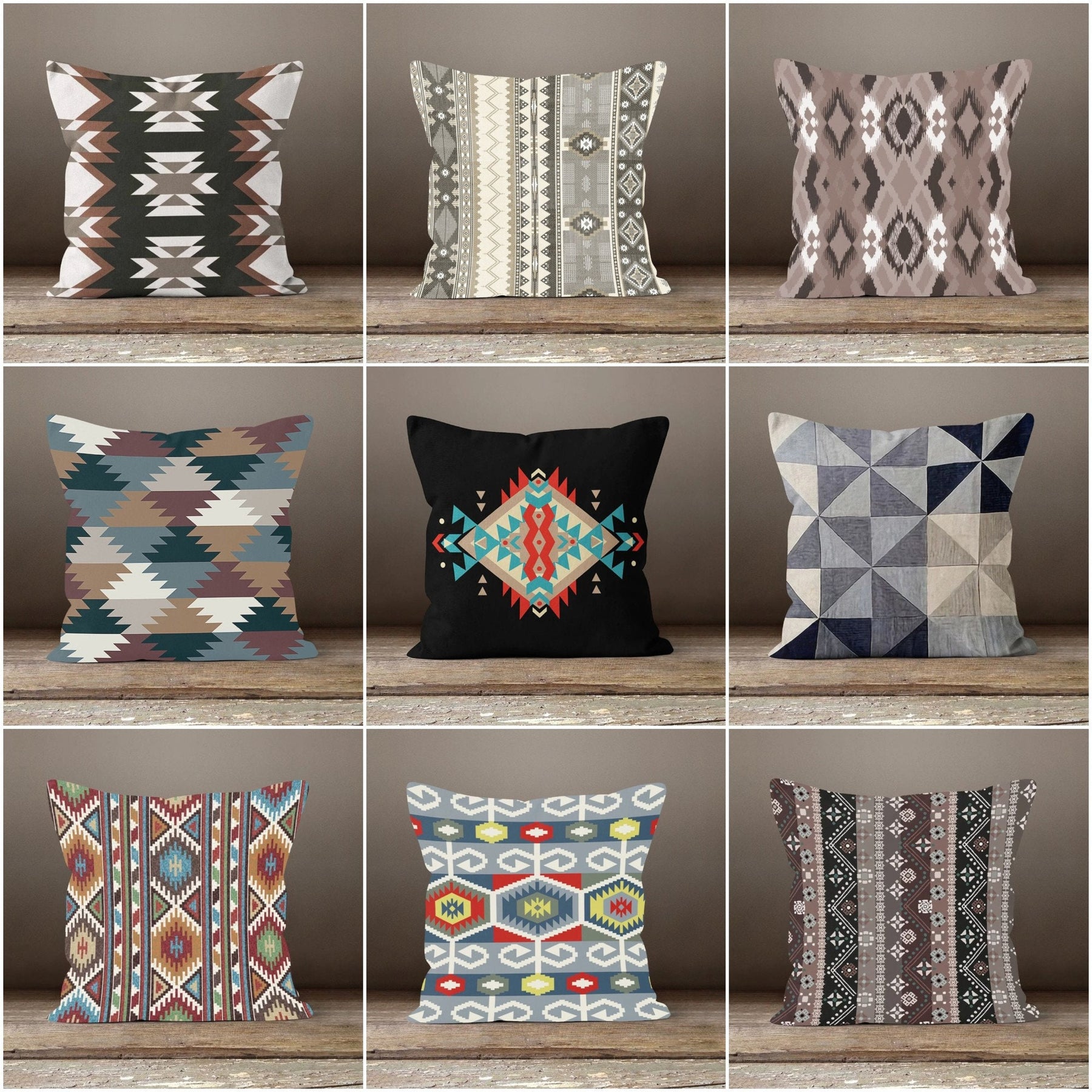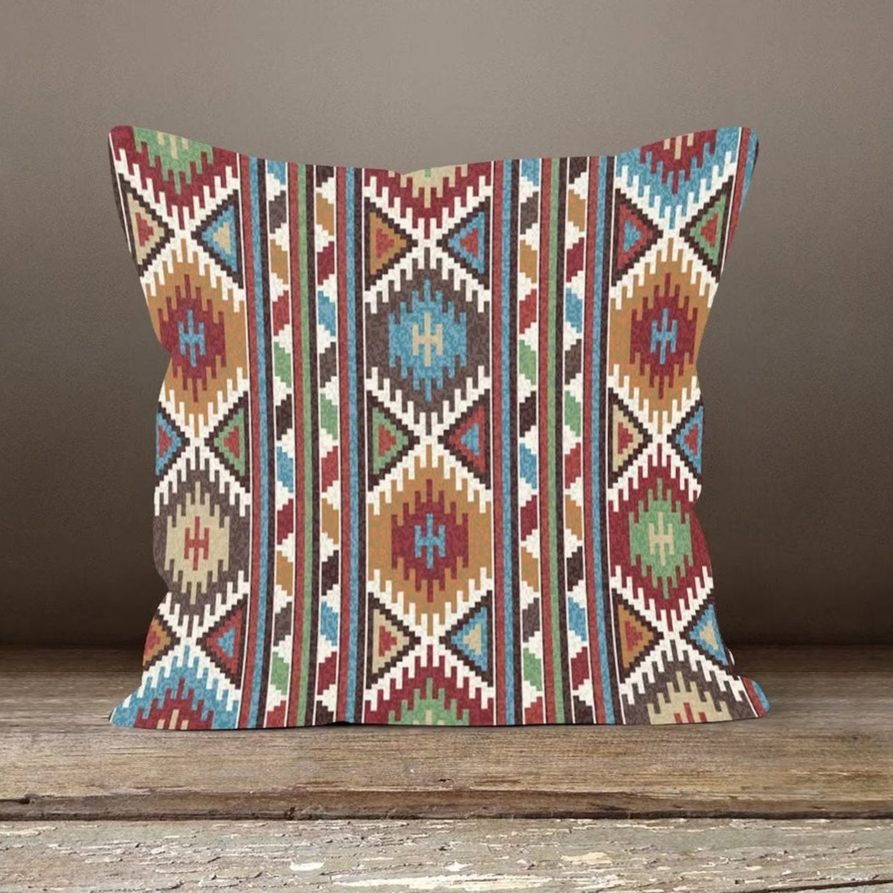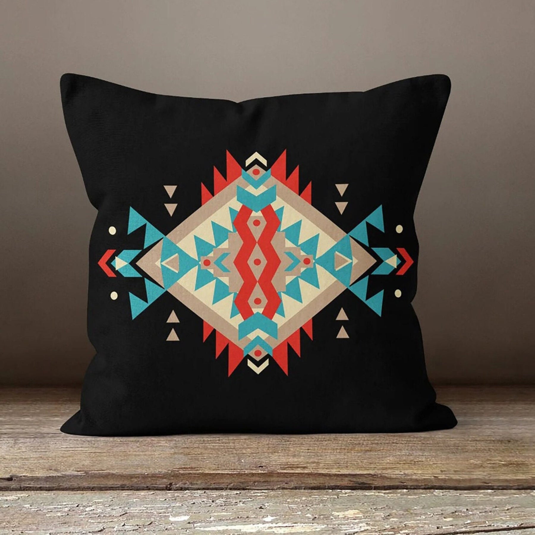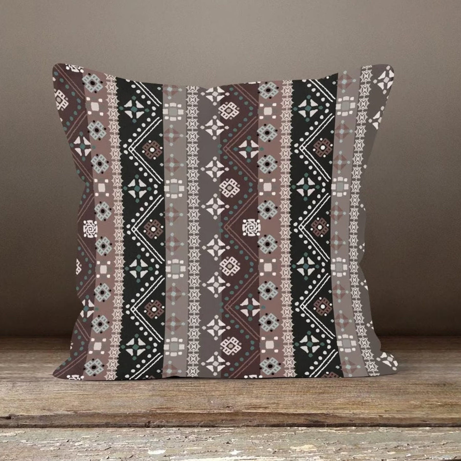 These elegant square decorative throw pillow covers with rug, ethnic, authentic, geometric, aztec design;
