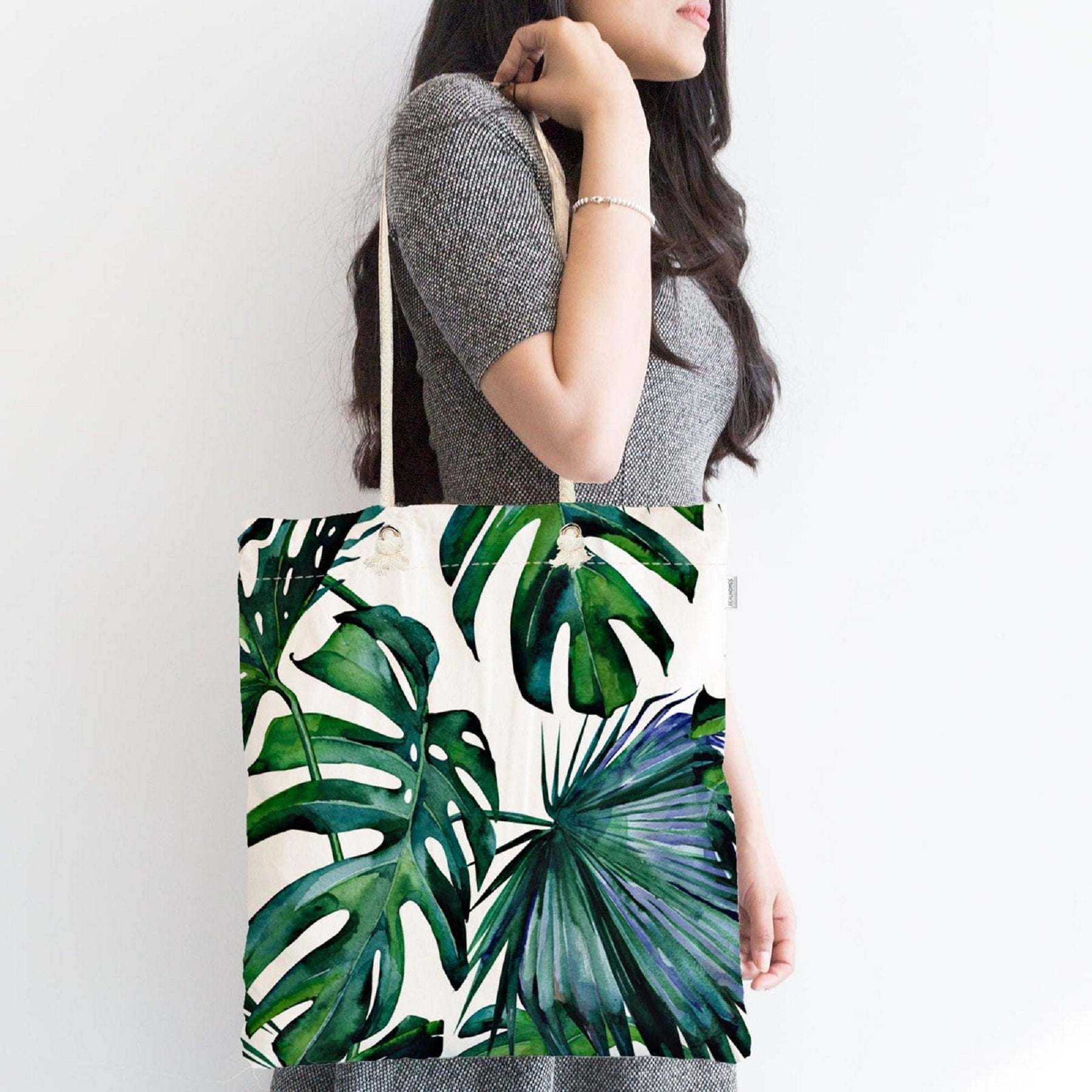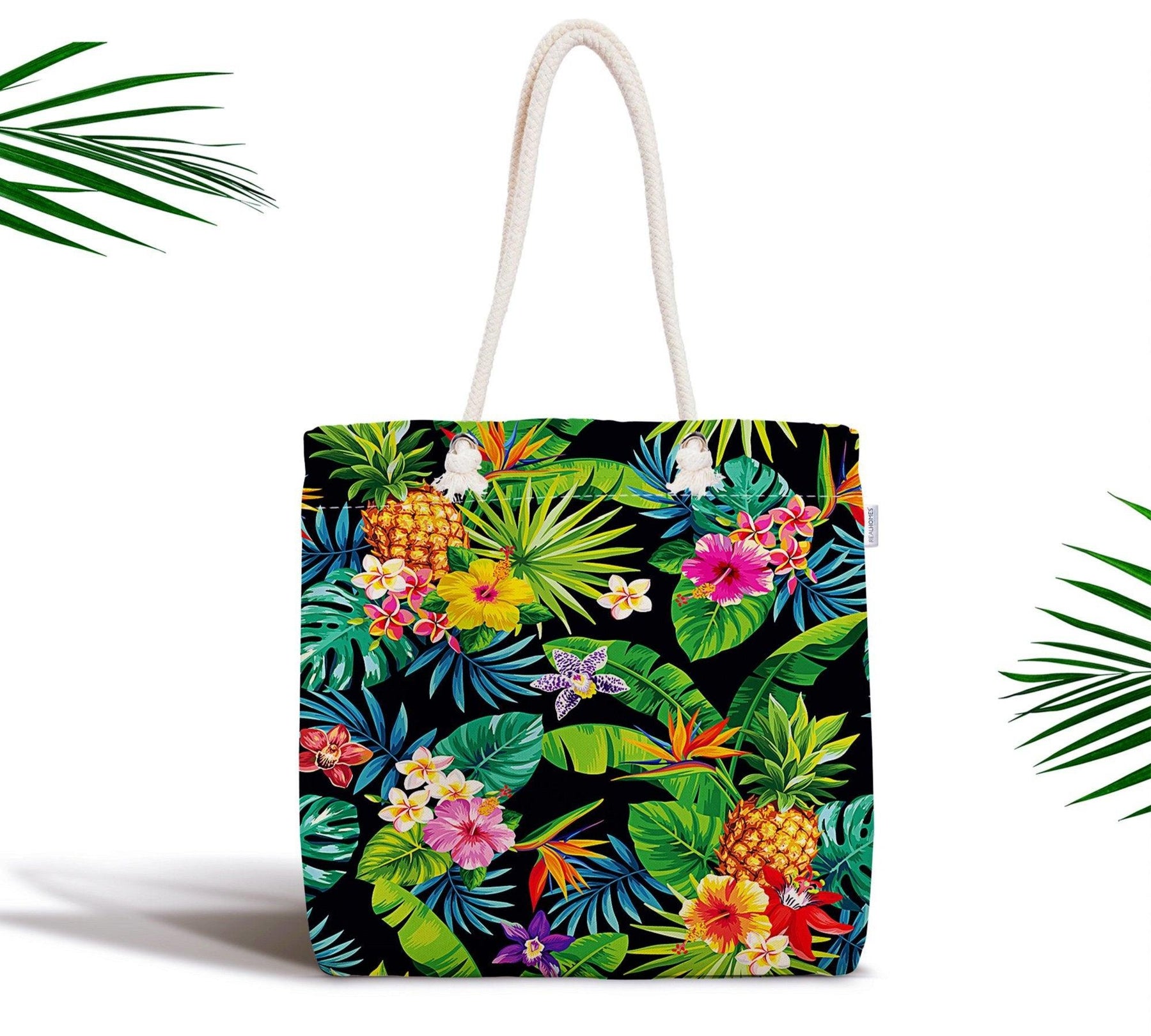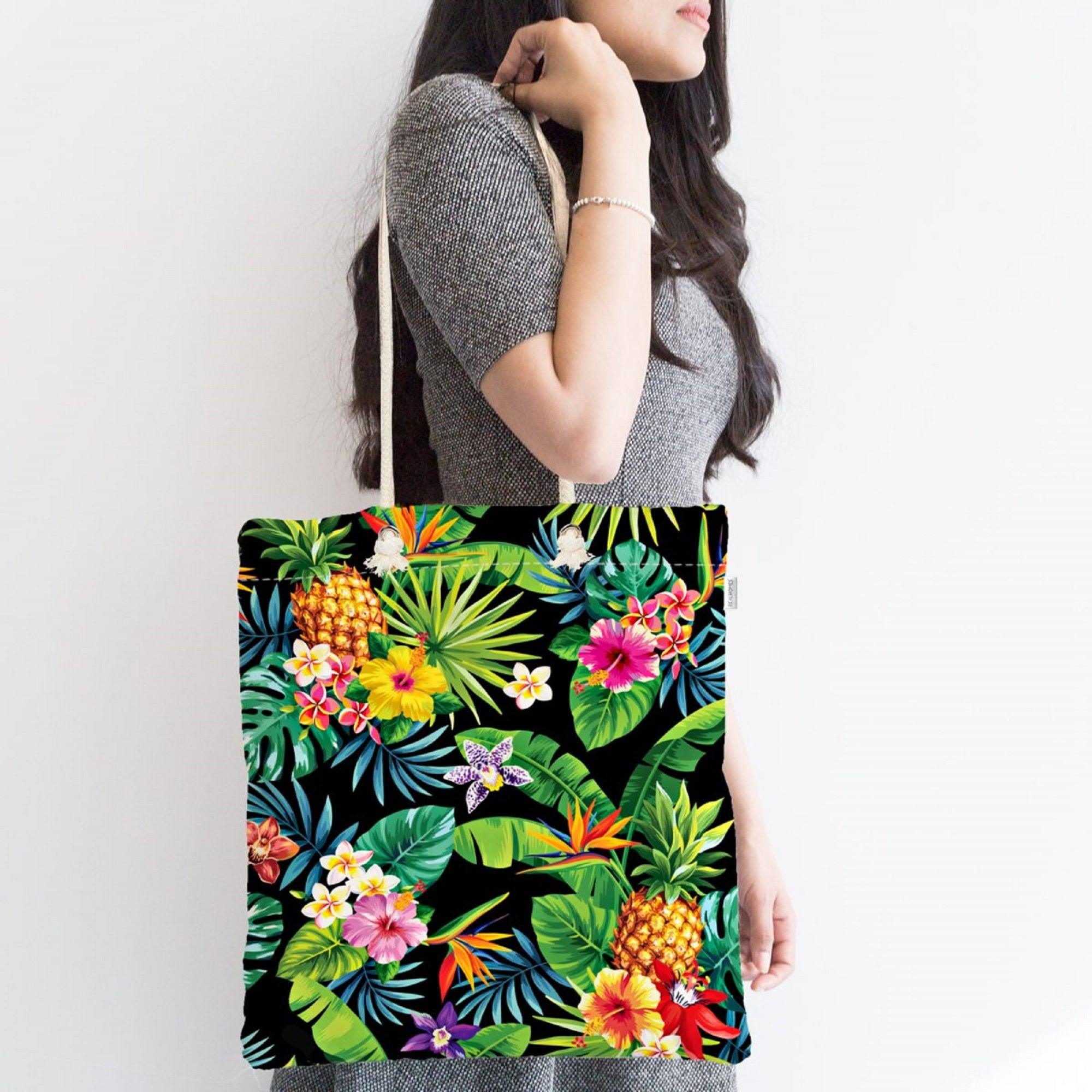 This elegant modern design digital printed summer trend fabric tote/messenger bag with colorful flowers and green plants;
