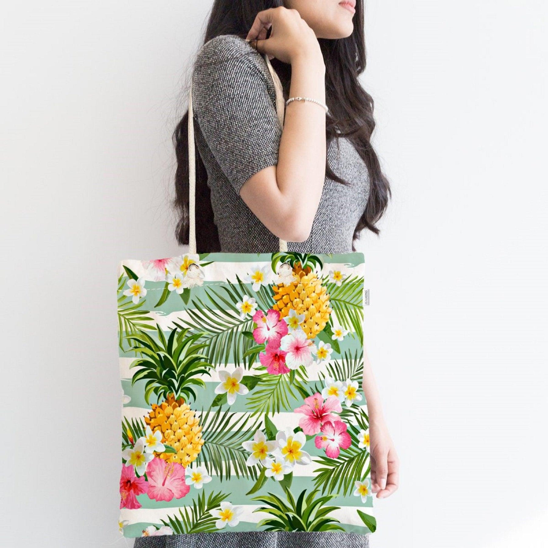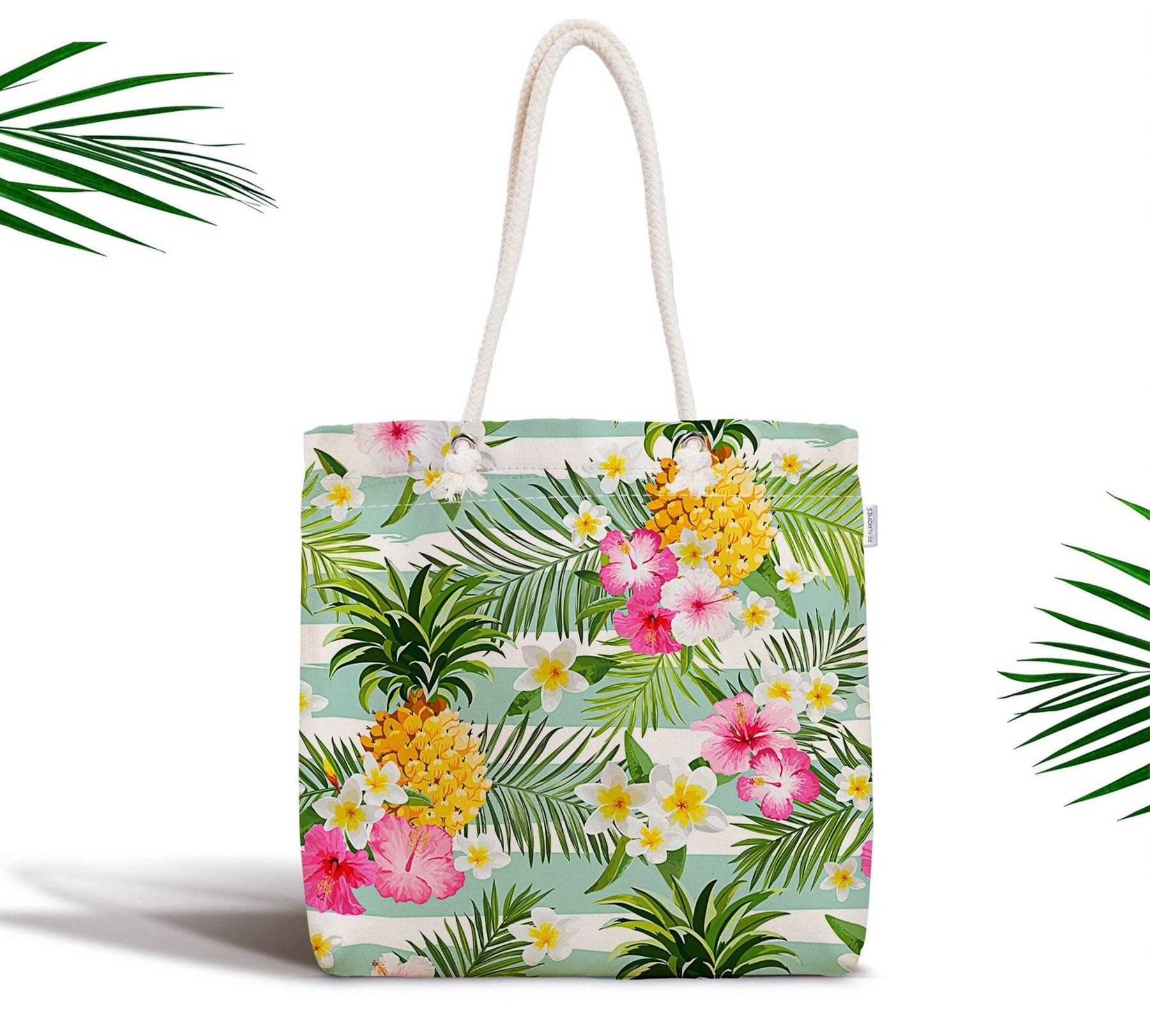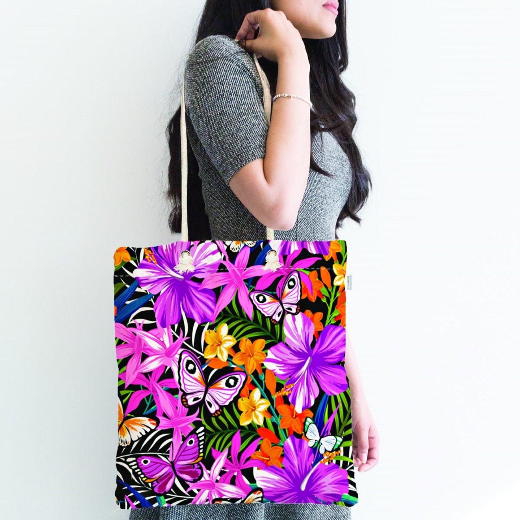 This elegant modern design digital printed summer trend fabric tote/messenger bag with colorful flowers and green plants;