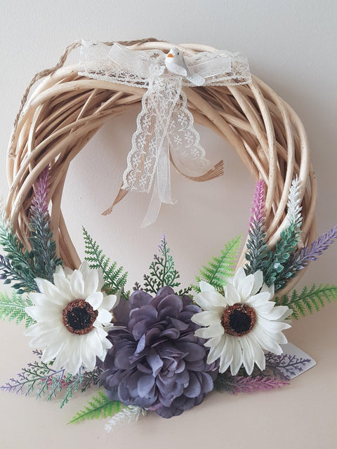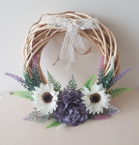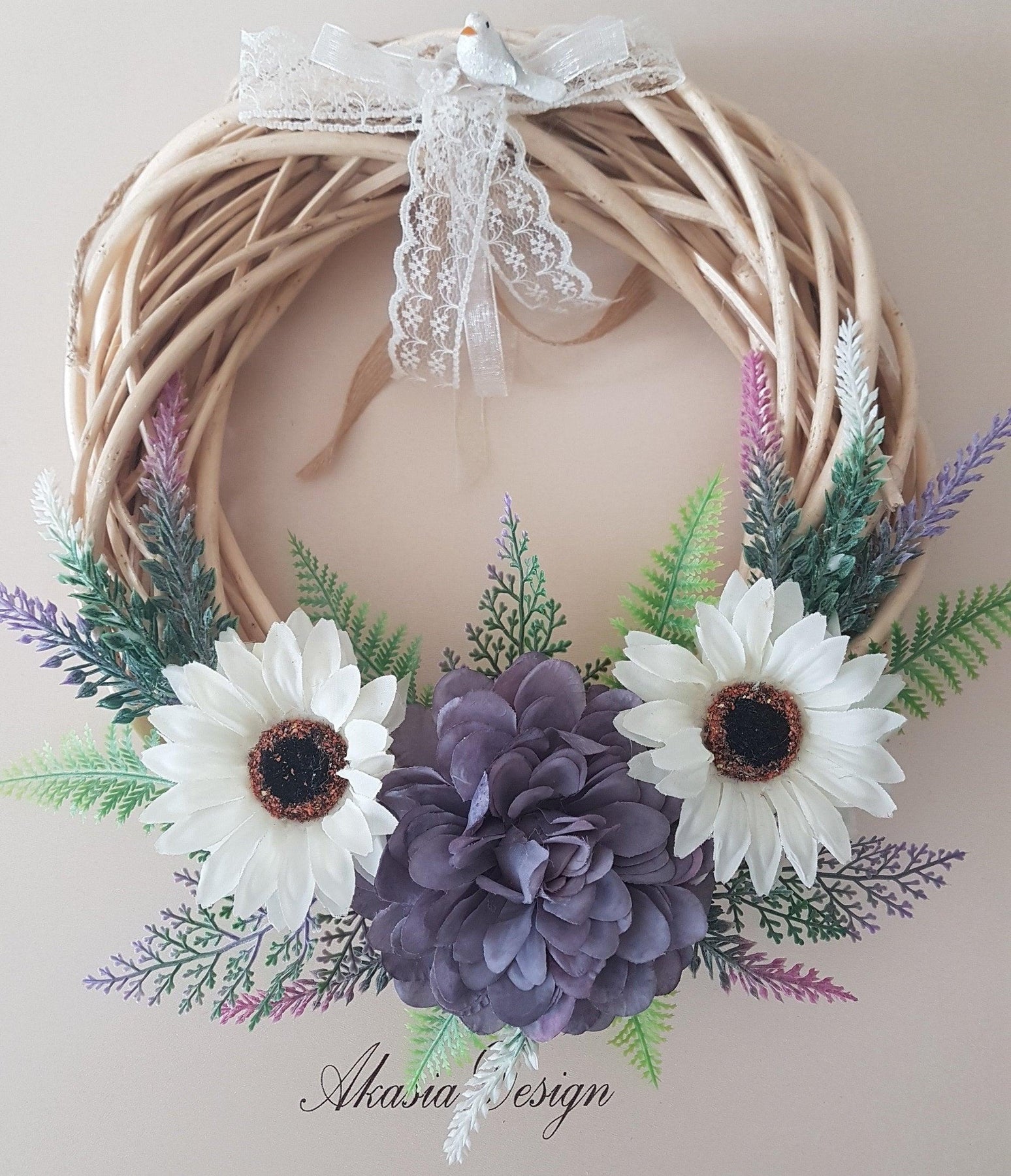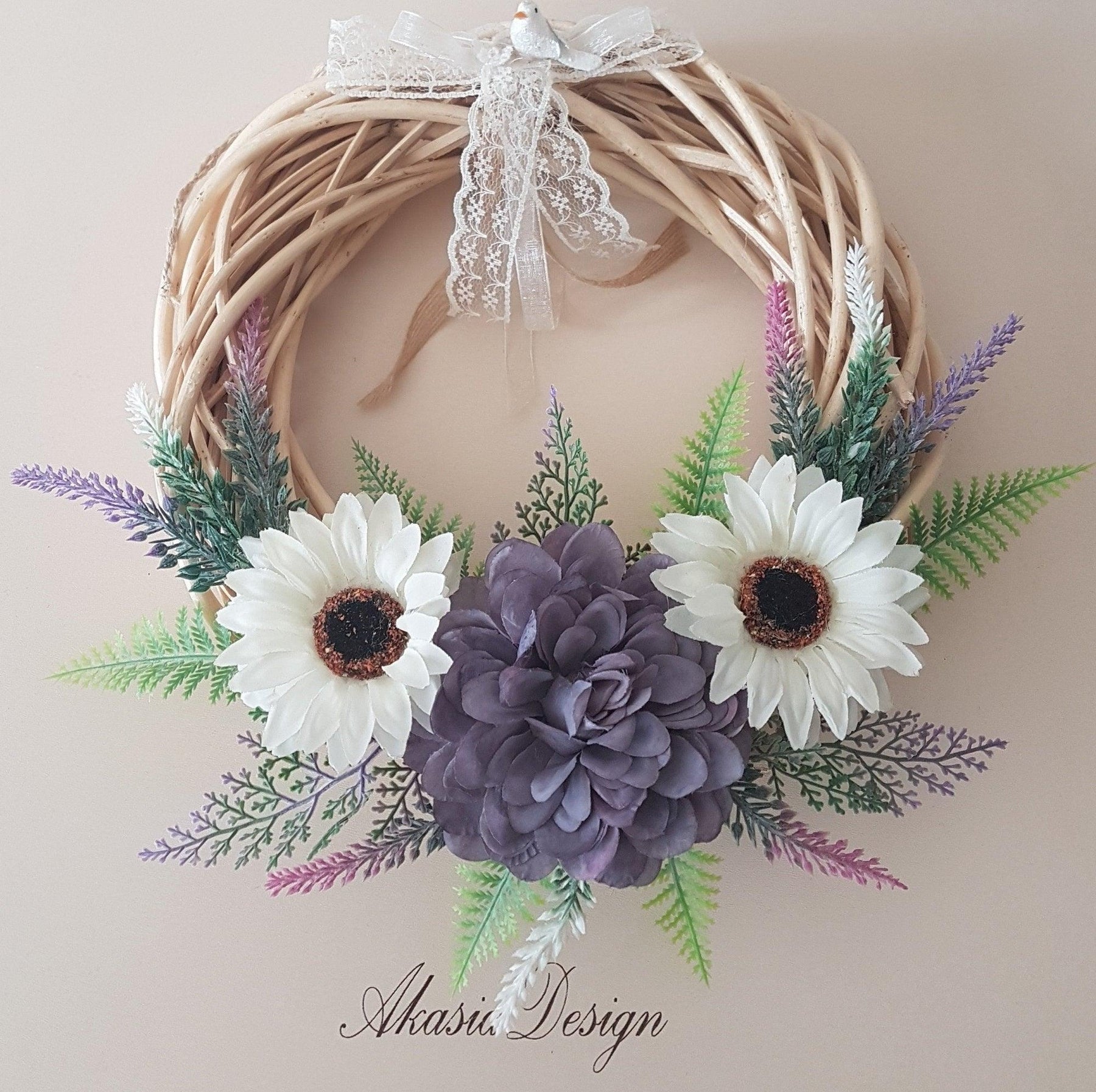 Imagine this "Purple Daisy Wicker Wreath" on your front door or as a wall decor to welcome your family and friends!