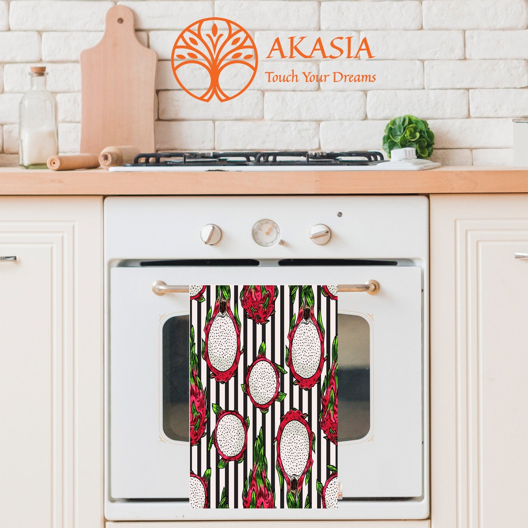 These elegant decorative rectangle kitchen/dish/hand/tea towels with Avocado, Banana, Fig and Dragon Fruit;