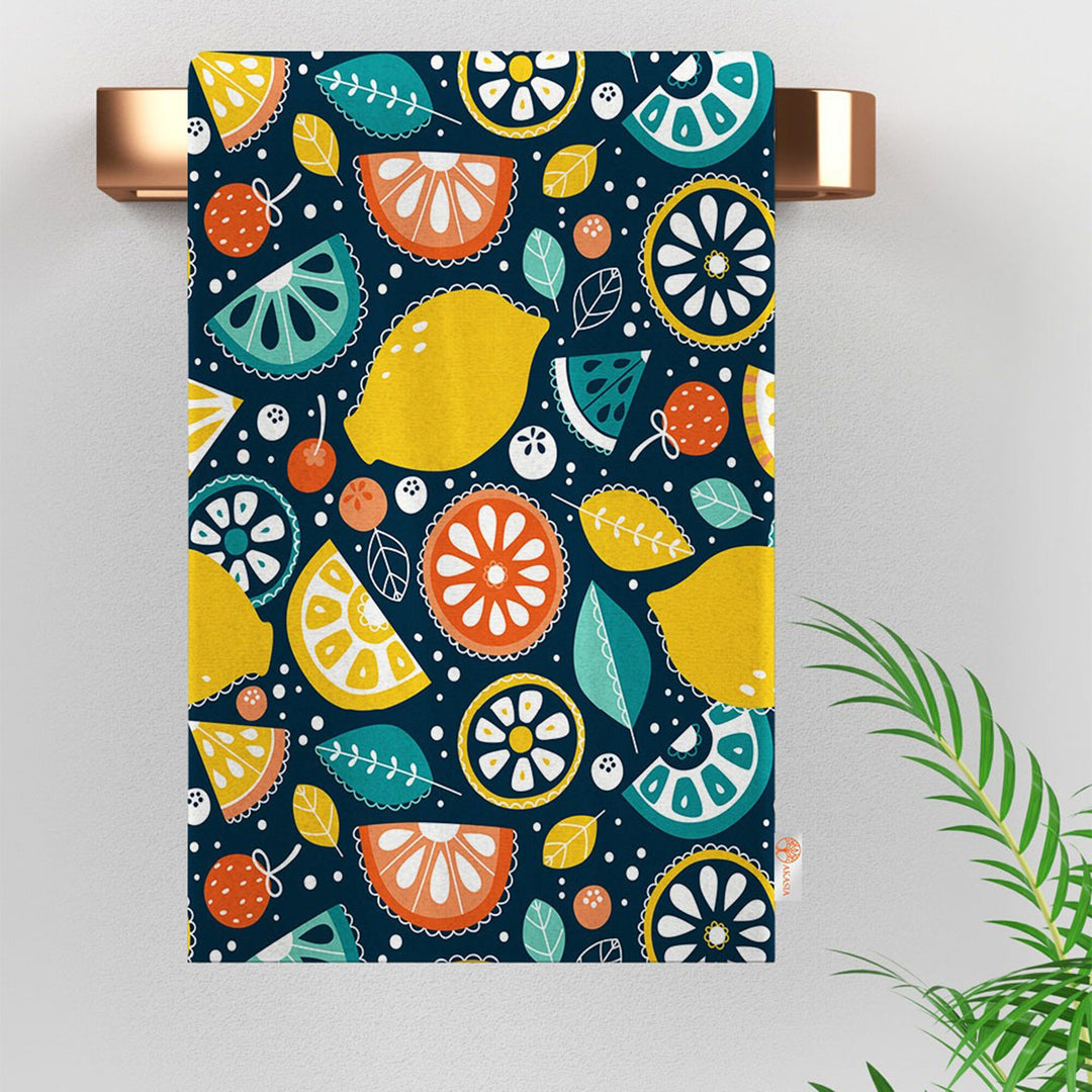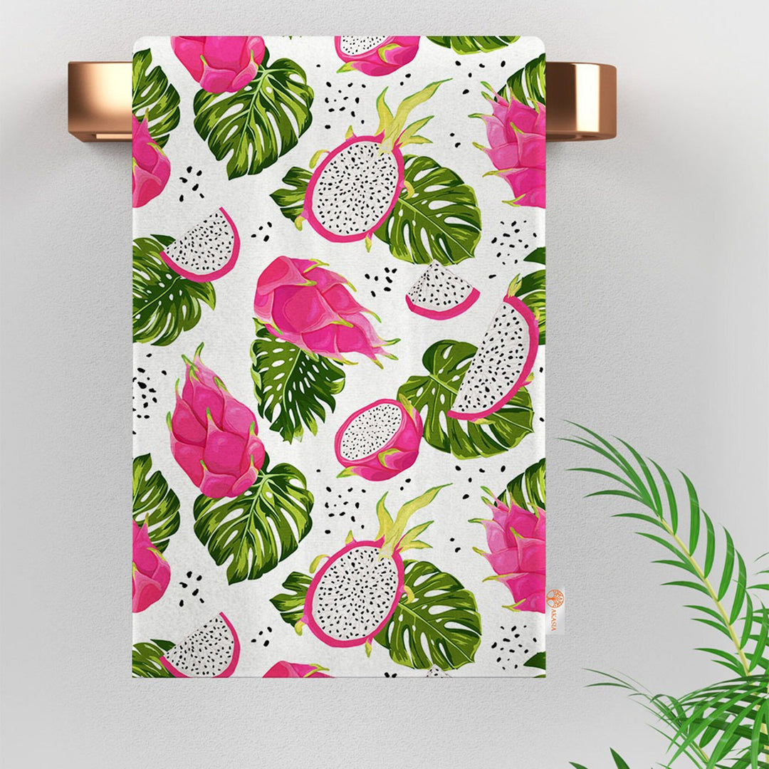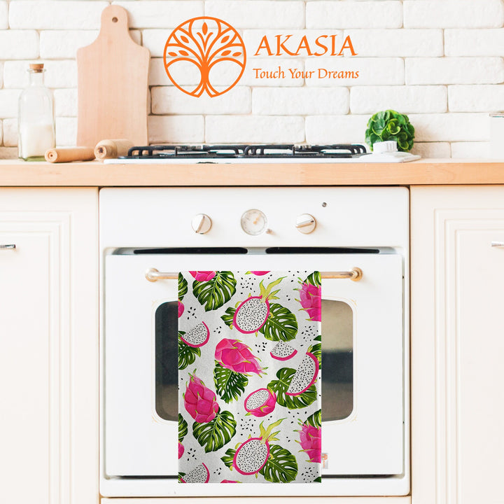 These elegant decorative rectangle kitchen/dish/hand/tea towels with Dragon Fruit, Pomegranate and Lemon prints;
