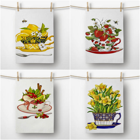 These elegant decorative rectangle kitchen/dish/hand/tea towels with fruit tea;