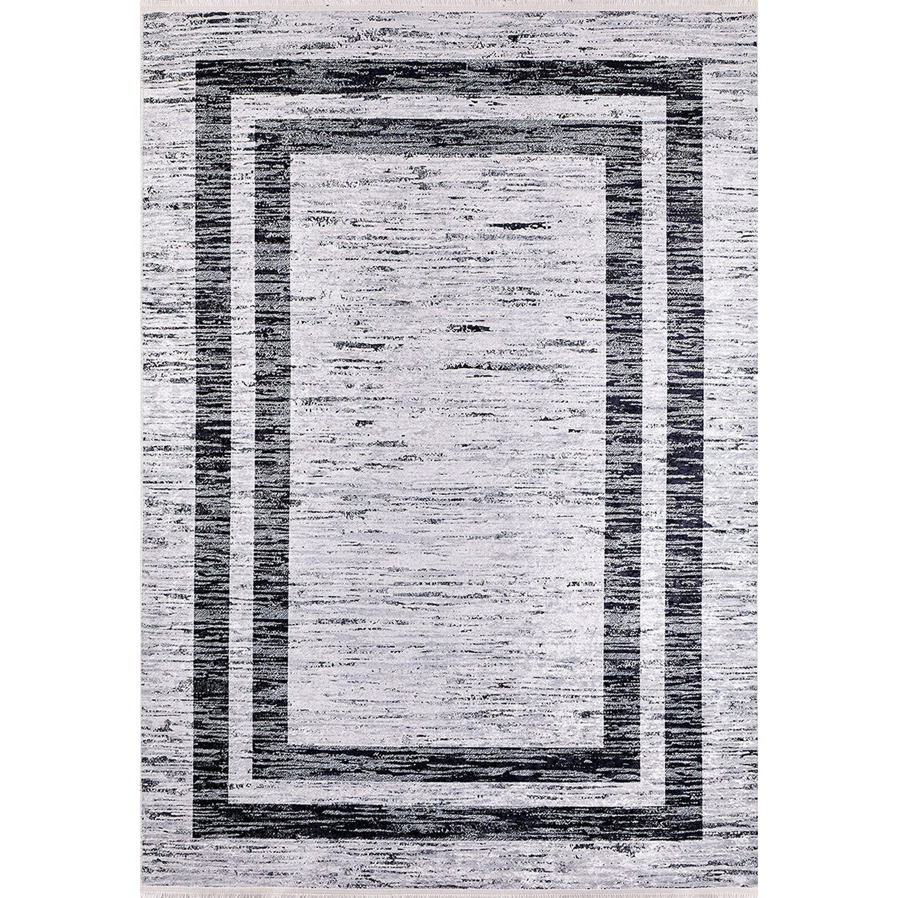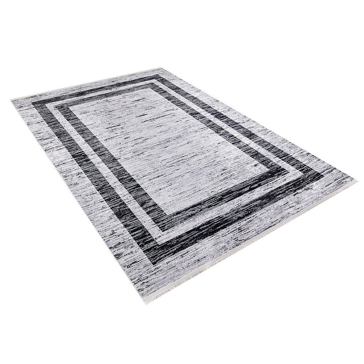 Anthracite Bordered Rectangle Rugs for Living Room - Grey Area Rug 5x7