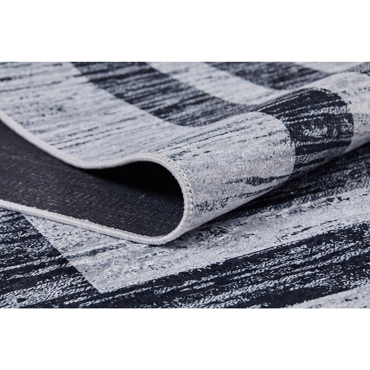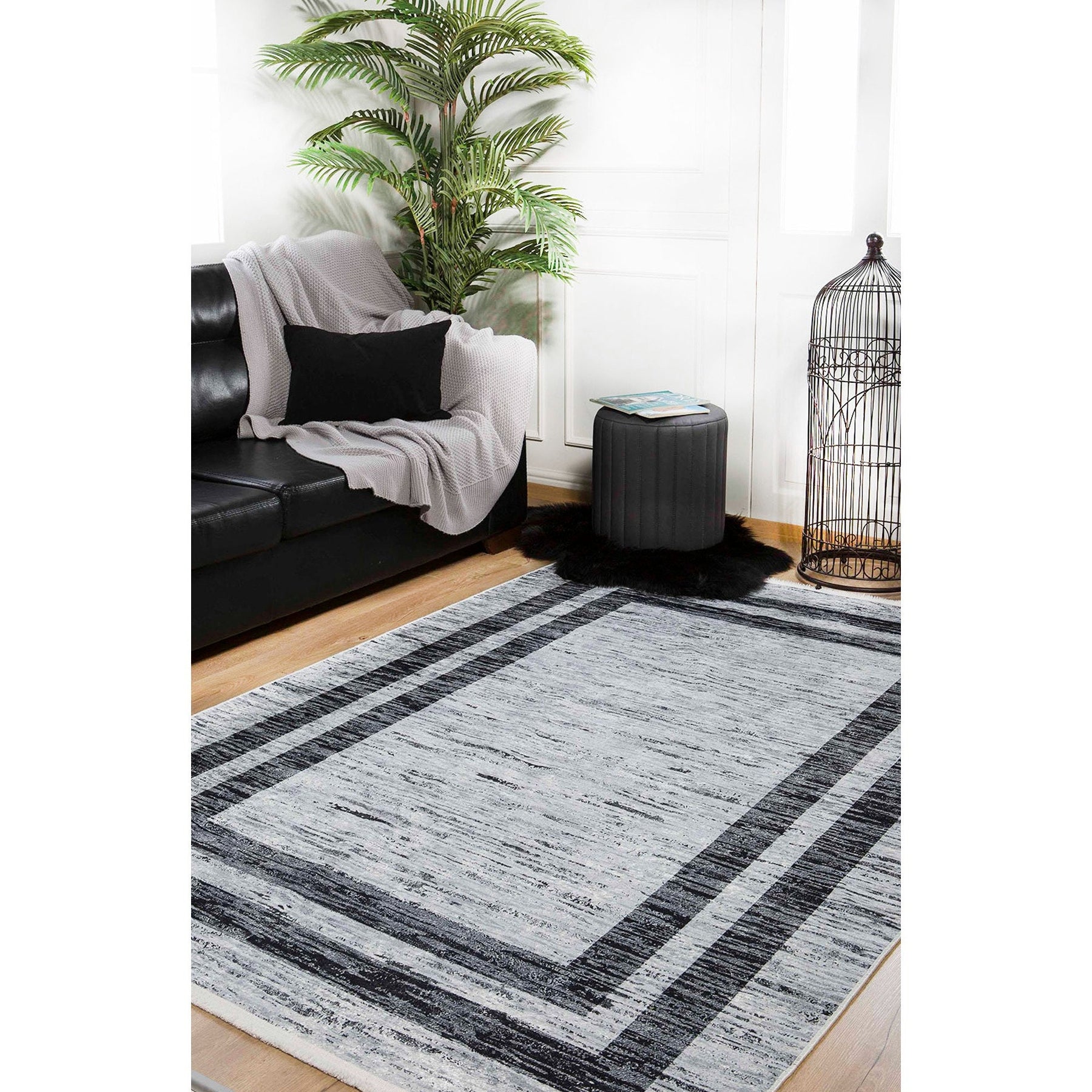 Geometric Rug|Anthracite Bordered Gray Rug|Modern Non-Slip Carpet|Farmhouse Washable Carpet|Decorative Area Rug|Multi-Purpose Anti-Slip Rug