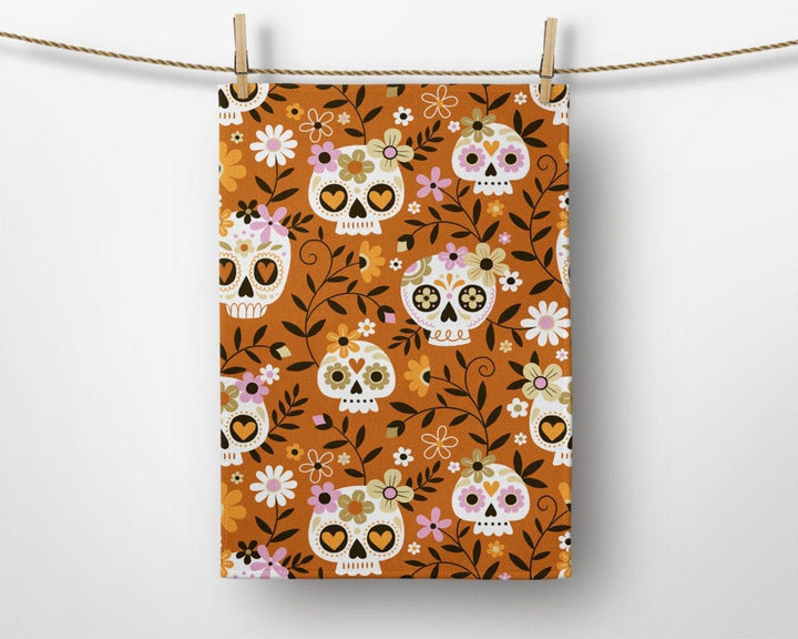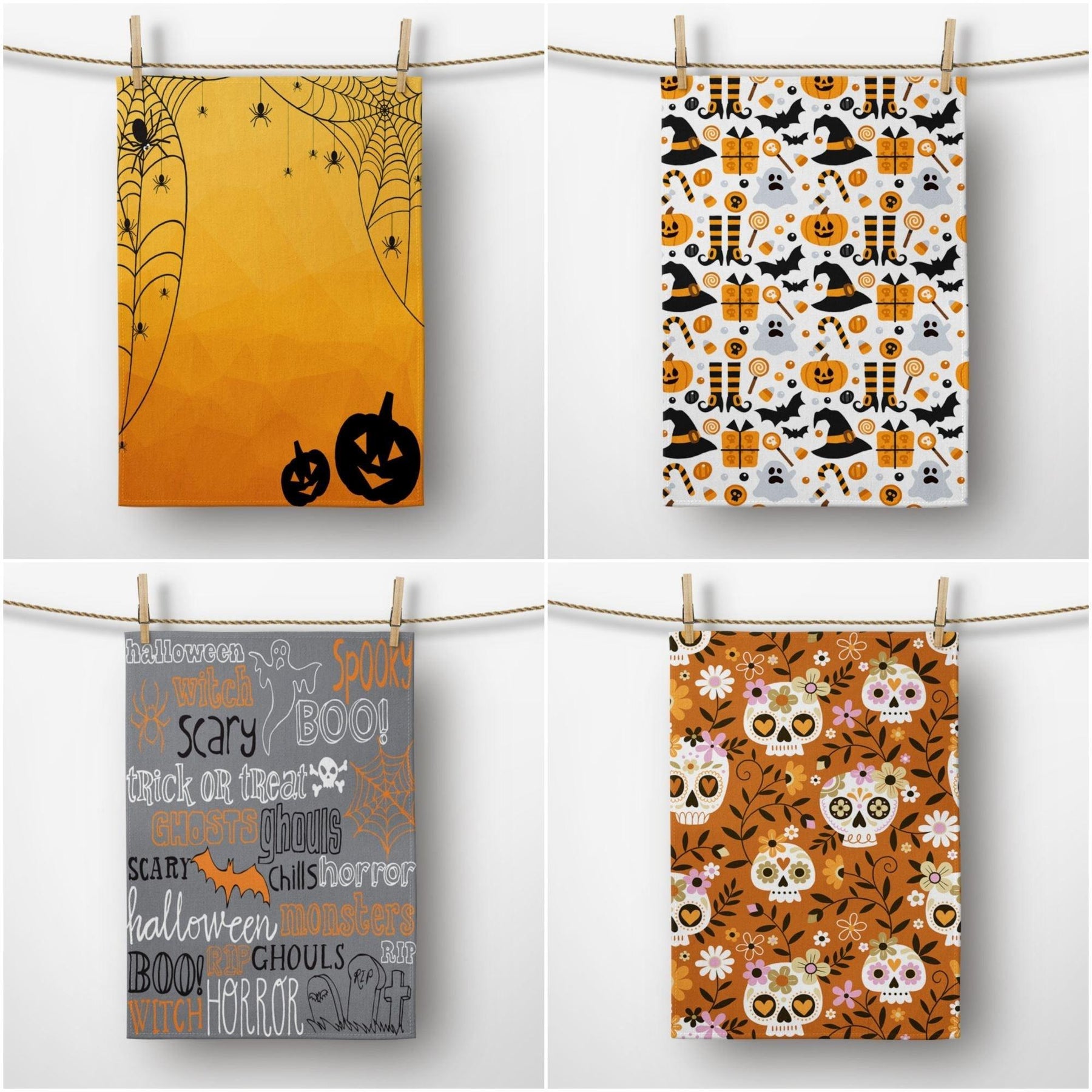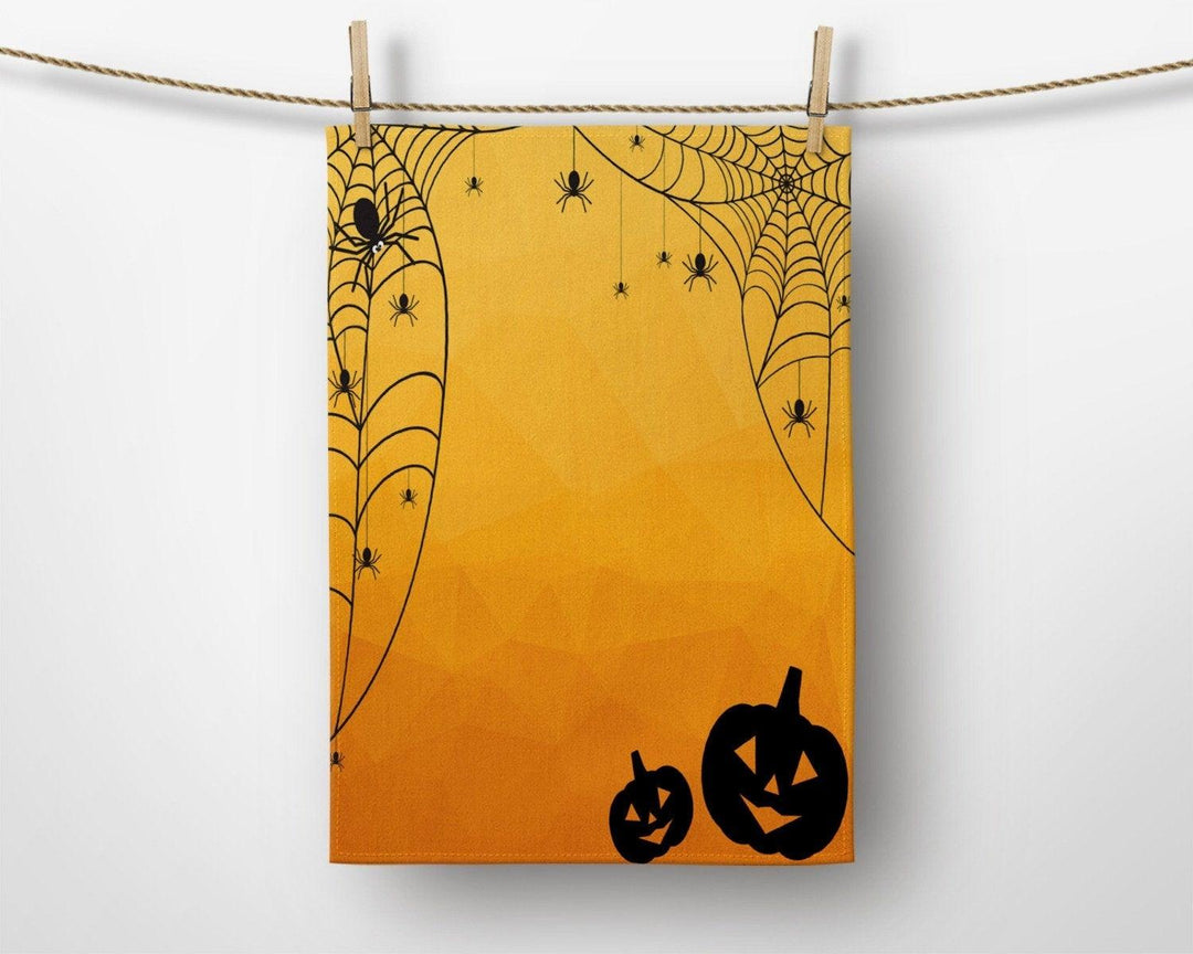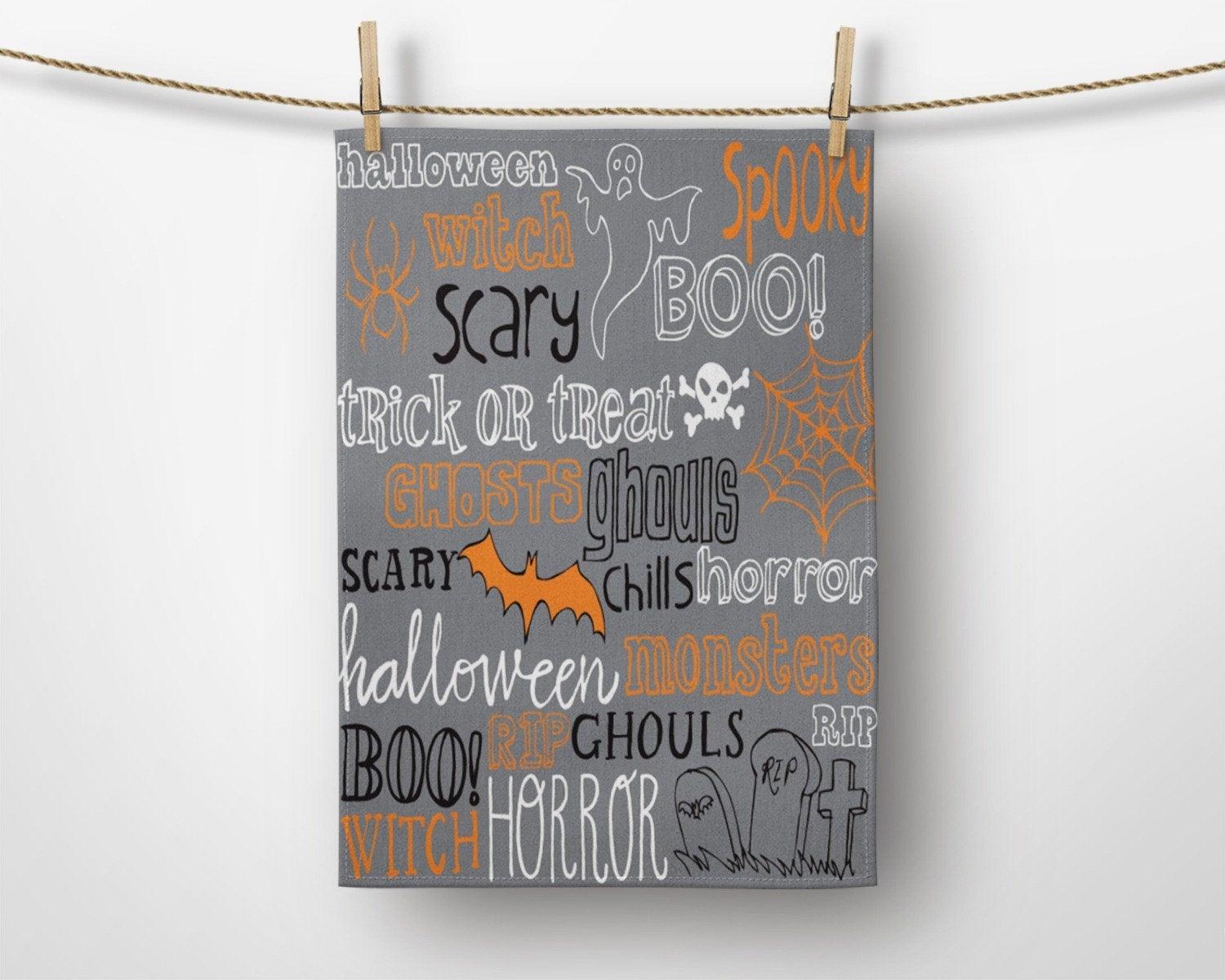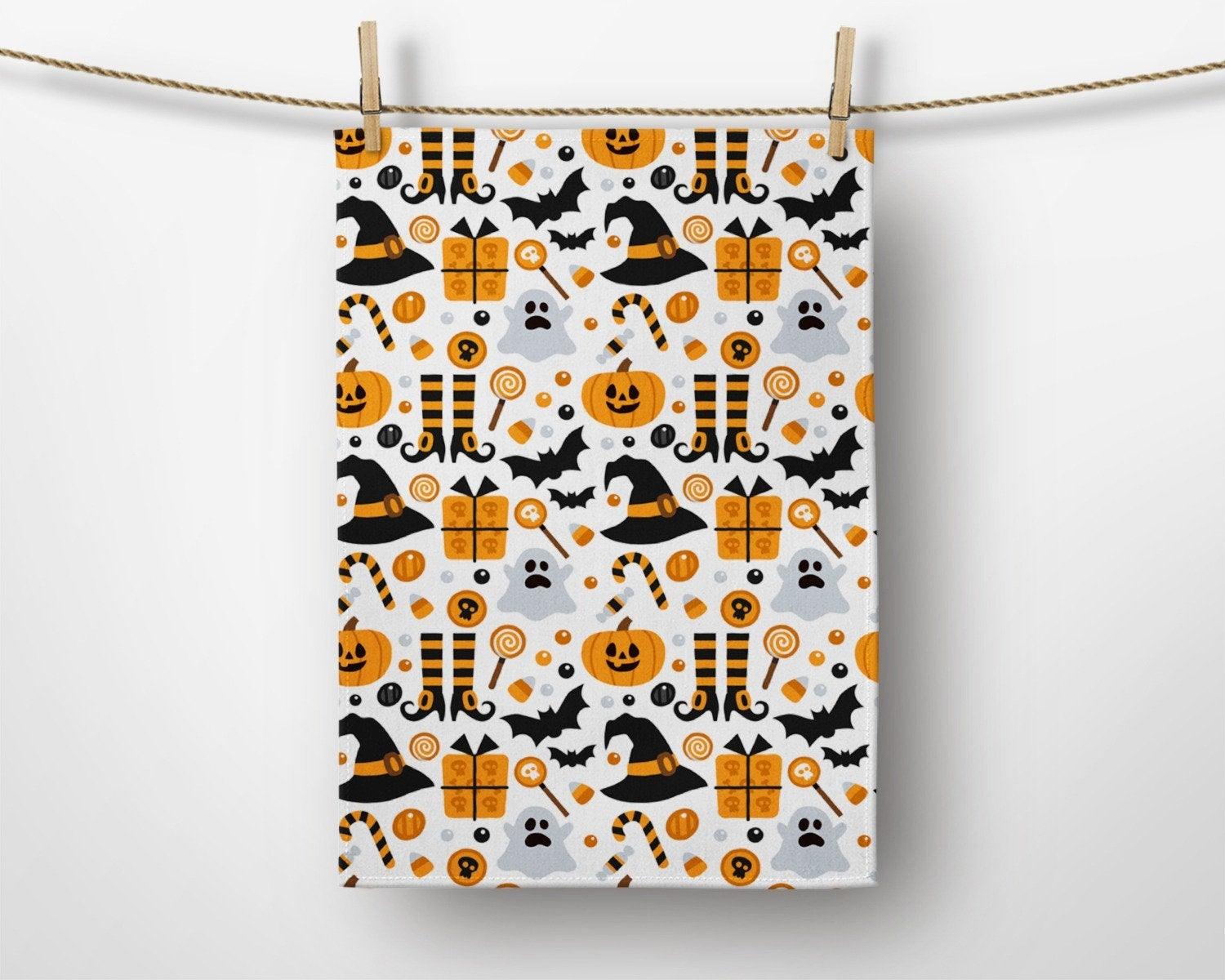 These elegant decorative rectangle kitchen/dish/hand/tea towels with carved pumpkins, Halloween sayings, skull print, spider web and witch hat ;