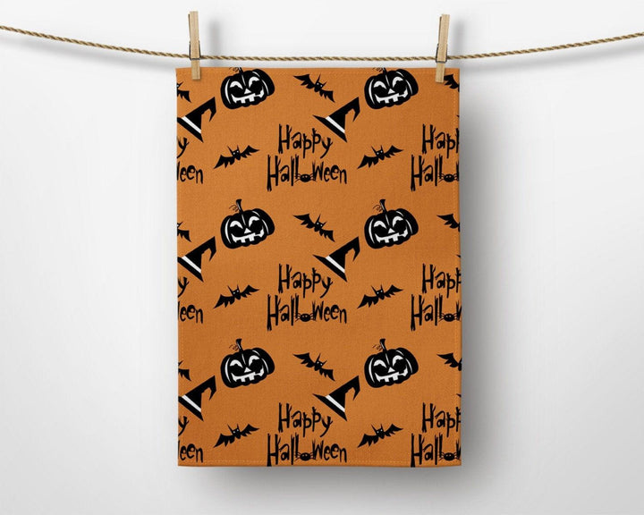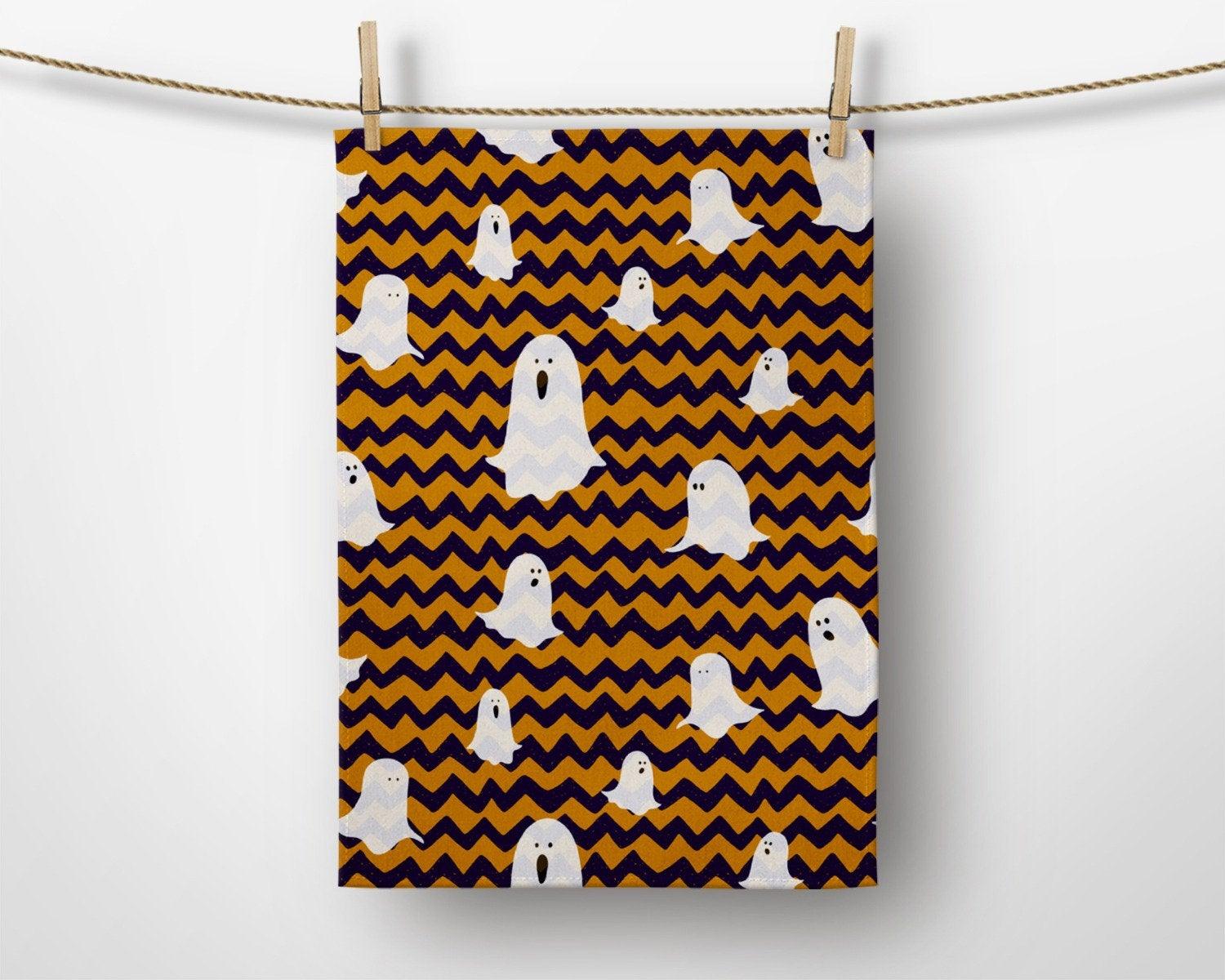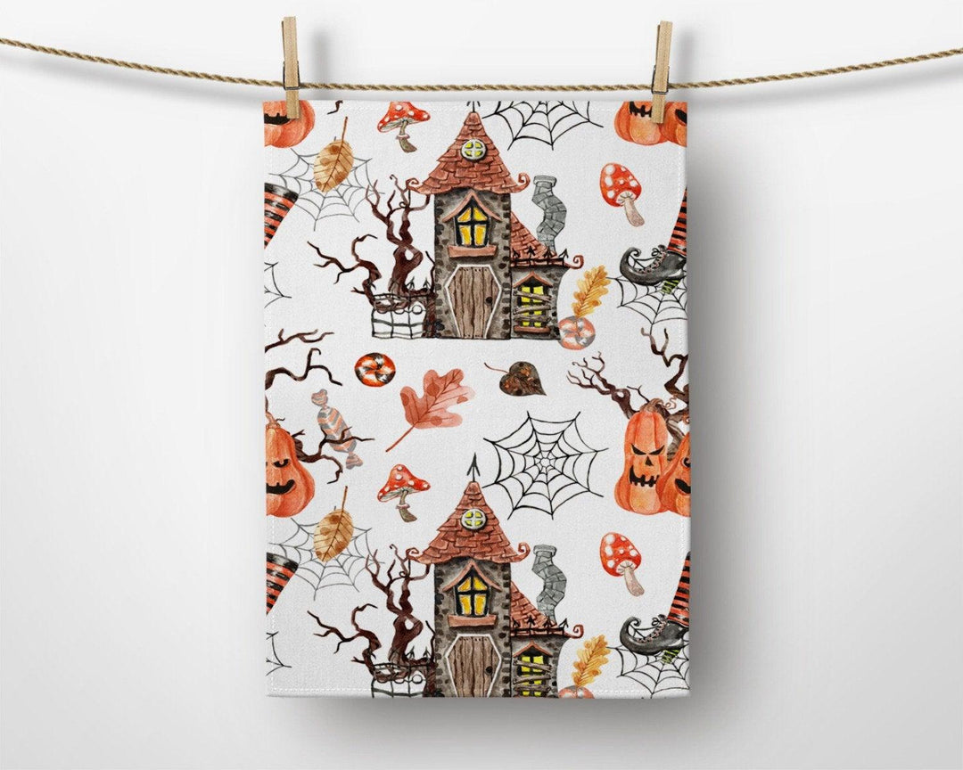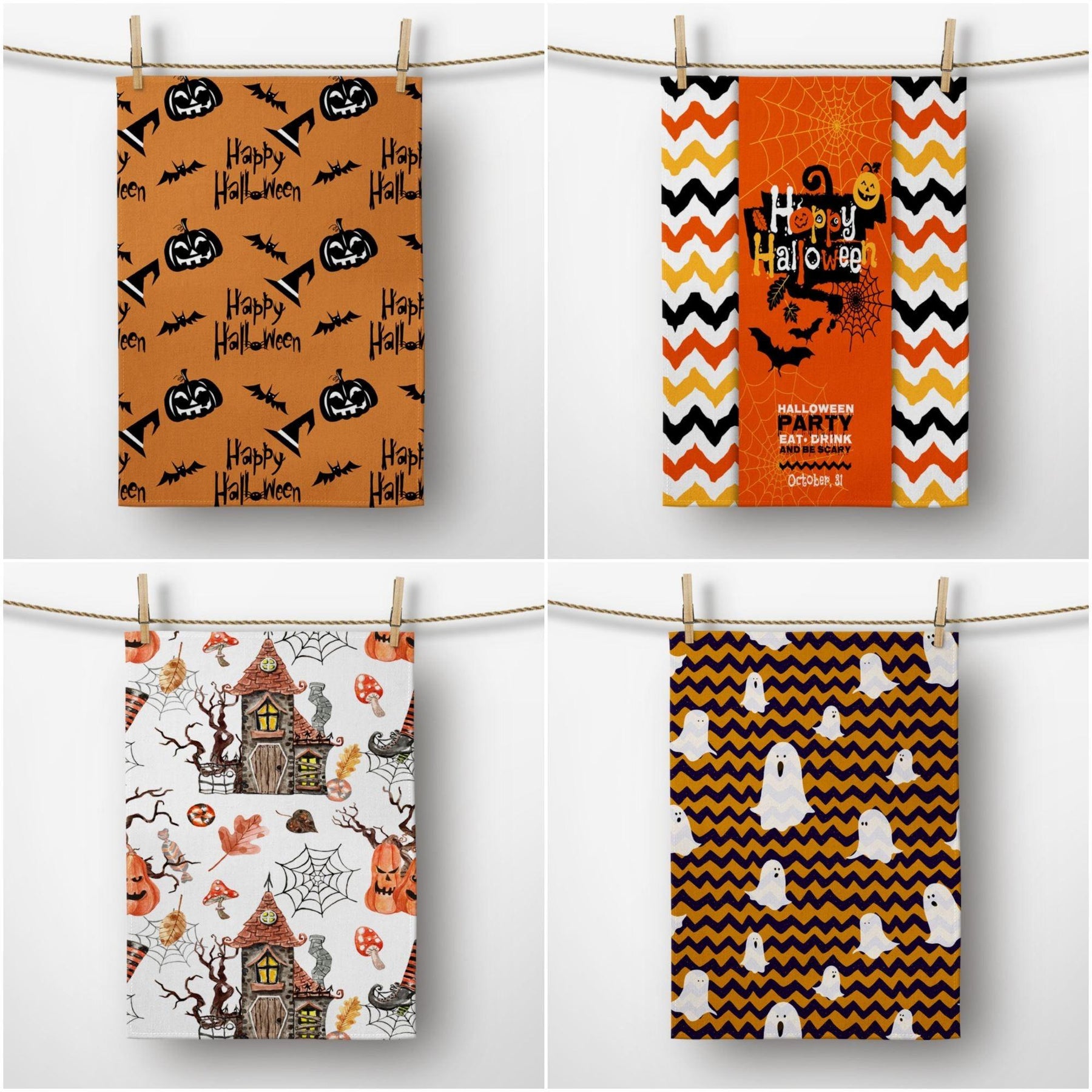 These elegant decorative rectangle kitchen/dish/hand/tea towels with carved pumpkins, ghost print, Happy Halloween print and haunted house;