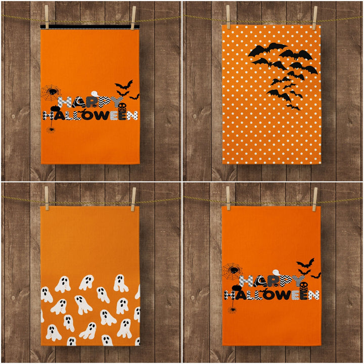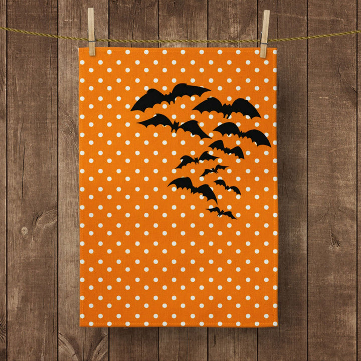 Halloween Kitchen Towel|Ghost Print Dish Towel|Bat and Happy Halloween Hand Towel|Decorative Tea Towel|Autumn Trend Orange Black Hand Towel