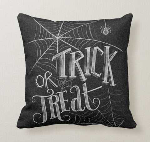 These elegant square decorative rustic trick or treat throw cushion covers with pumpkins, ghosts, witch and bats;